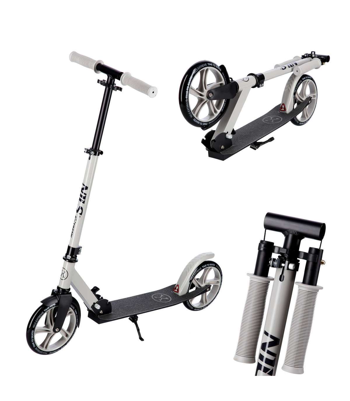The Nils Extreme HM2009 urban scooter combines durability and style, designed for everyday urban mobility. This model is intended for children, teenagers, and adults. It is made from the highest quality materials, making it durable and lightweight.The scooter is great for recreational riding on asphalt, concrete surfaces, and paved sidewalks. The handlebar is equipped with rubber grips for a secure hold. The 3-step adjustment allows for height customization to the user's height. ABEC7 bearings and large wheels (200mm) enhance stability and smoothness of the ride, while a wide deck makes it easier to maintain balance. Additionally, a foot brake ensures maximum safety during the ride.The HM2009 model can be easily and quickly folded, facilitating transport and storage at home or in the office.The HM2009 is an ideal choice for active individuals looking for a reliable and stylish mode of transportation.Specification:Material: Steel, aluminum, rubberFoldable: yesDimensions when folded:Length: 75 cmWidth: 11,5 cmHeight: 32 cmBearings: ABEC7Wheels:PU 200mm/82AKickstand: yesEquipped with a foot brakeHandlebar adjustment range: 75 cm - 95 cmDimensions when unfolded:Length: 87 cmWidth: 39,5 cmHeight: 95 cmDeck dimensions:Length: 52 cmWidth: 11.5 cmMaximum user weight: 100 kgProduct weight: 3.9 kgNotes:Not intended for commercial useCompliant with standard PN-EN 14619:201524-month warrantyImporter: Abisal Ltd. | Poland | 41-807 Zabrze | Pyskowicka Street 17 | e-mail: abisal@abisal.plAbisal Ltd.. declares that the products sold by the company are safe and meet the requirements contained in the Act on General Product Safety of December 12, 2003. (Journal of Laws of December 31, 2003)