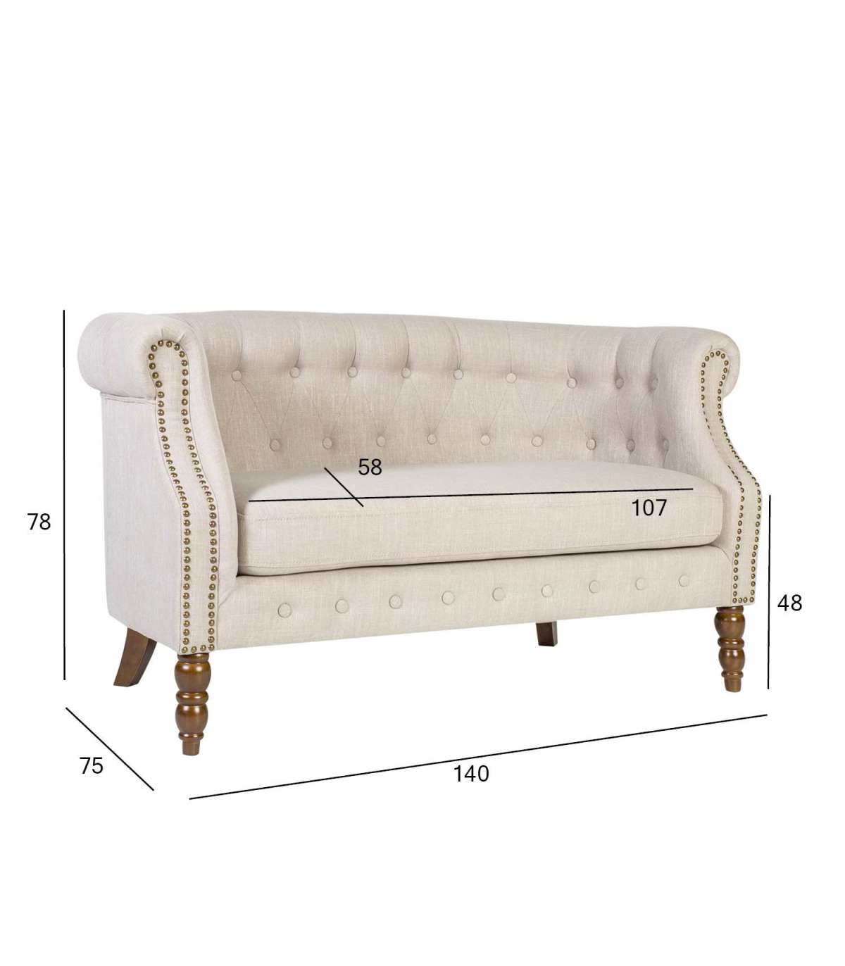 Diivan HOLMES 2-kohaline, bee˛. diivan on kaetud bee˛i linase välimusega kangaga. Kattematerjal: 57,7% polüester, 25,7% viskoos, 16,6% linane. Polsterdus: polüuretaanvaht. Diivanil on puidust jalad. Diivani üldmõõdud on 140x75xH78cm.