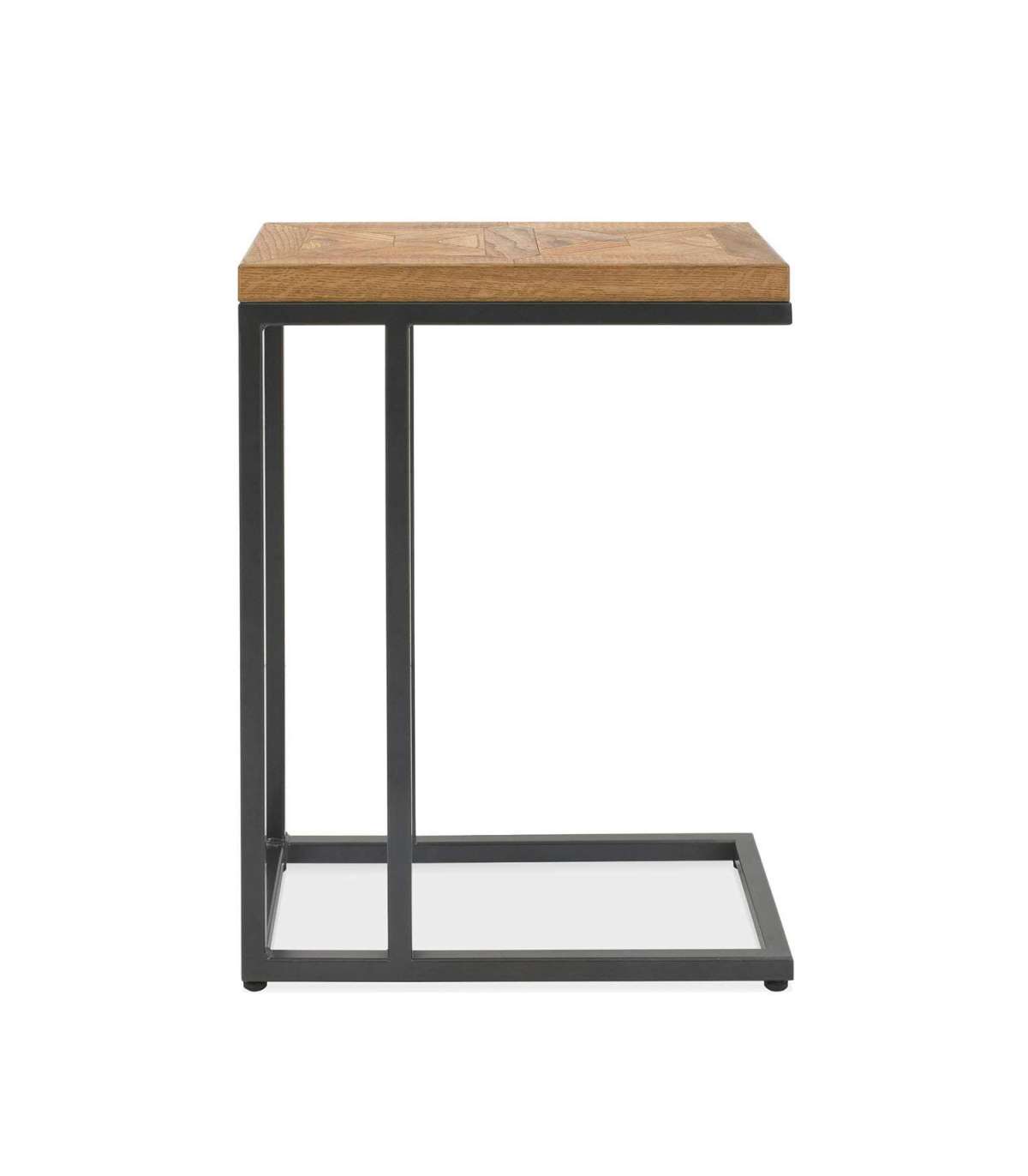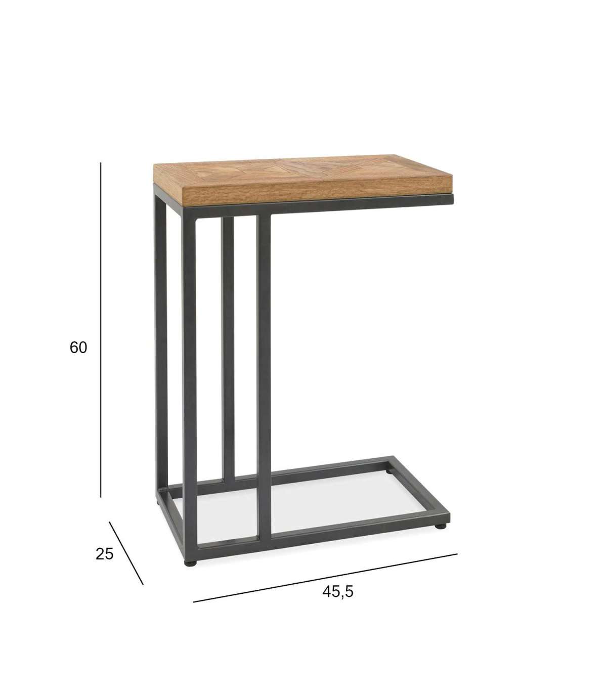Abilaud INDUS 45,5x25xH60cm. Efektne, naturaalse mosaiik tammespooniga lauaplaat on kauni harjatud töötlusega ning õlitatud. Pulbervärvitud metallist alusraam.