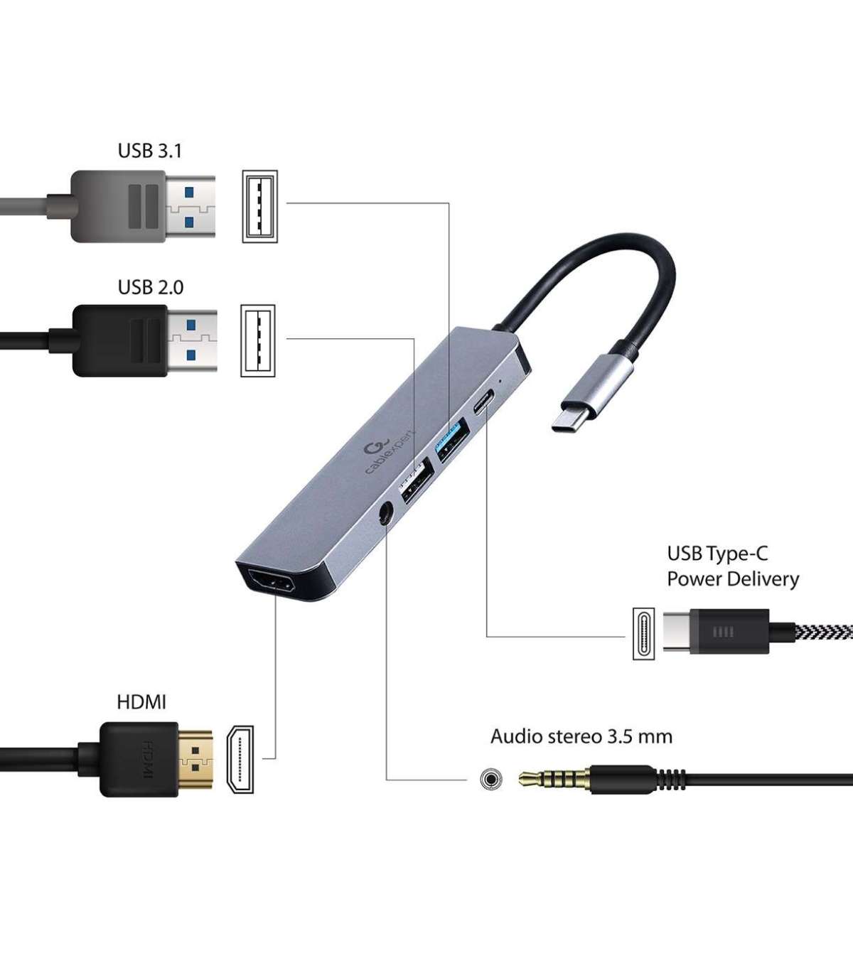 Gembird A-CM-COMBO5-02 laptop dock/port replicator Wired USB 3.2 Gen 1 (3.1 Gen 1) Type-C Silver