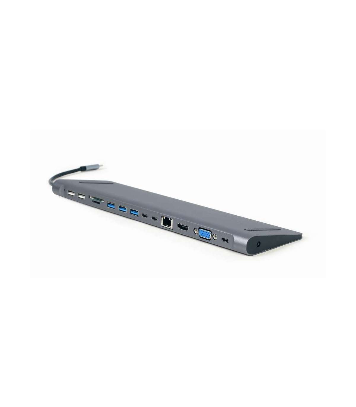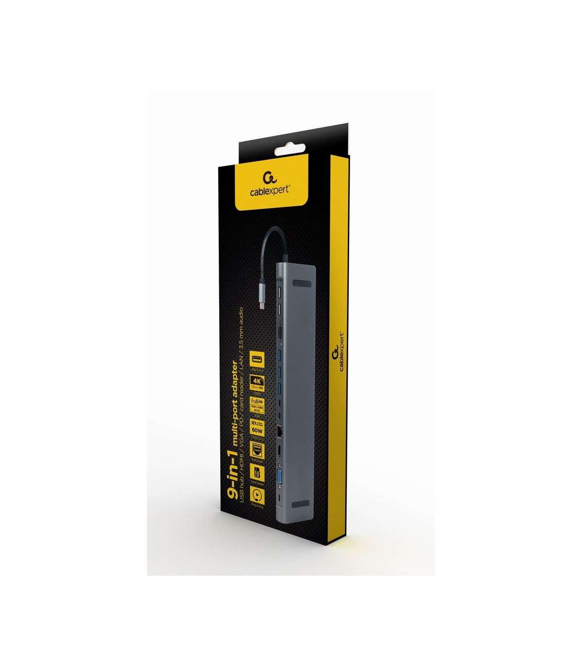Gembird A-CM-COMBO9-01 USB Type-C 9-in-1 multi-port adapter (USB hub + HDMI + VGA + PD + card reader + LAN + 3.5 mm