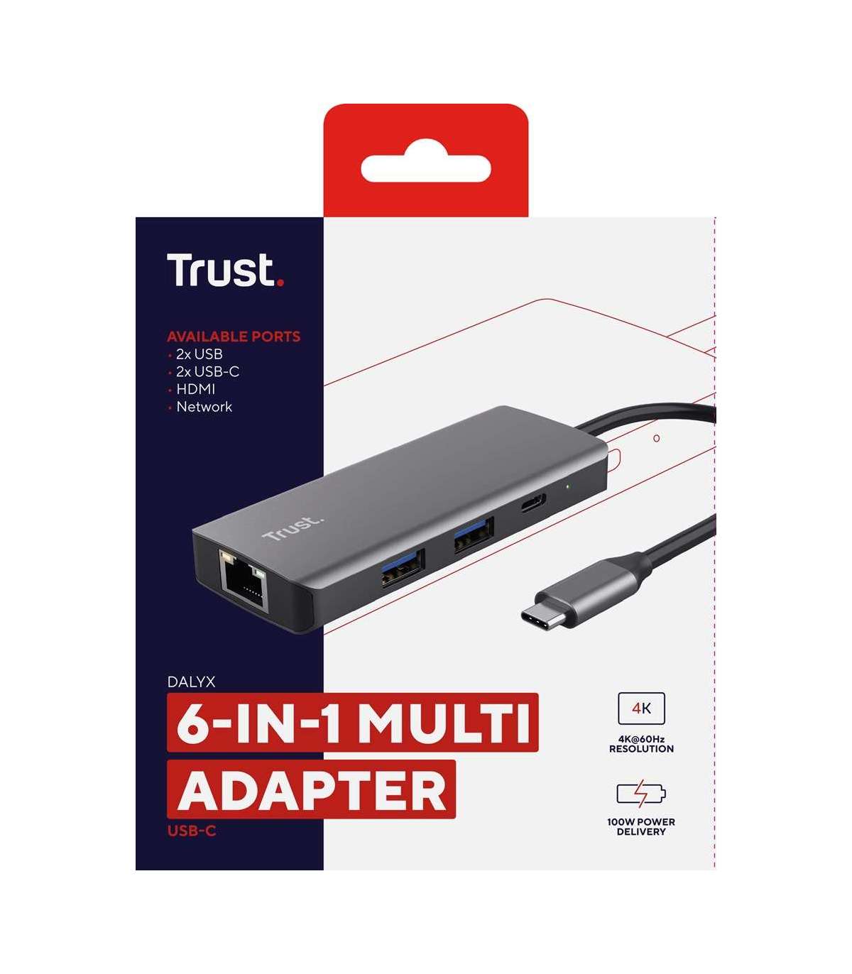 Trust Dalyx - 6-in-1 USB-C Multi-Port Adapter, 1000 Mbit/s (silver)