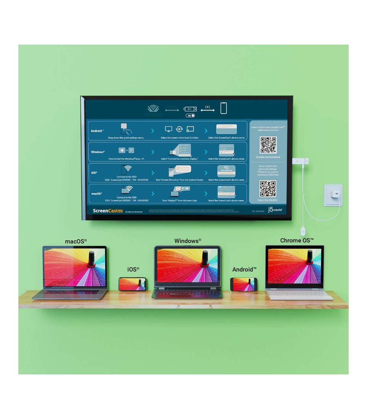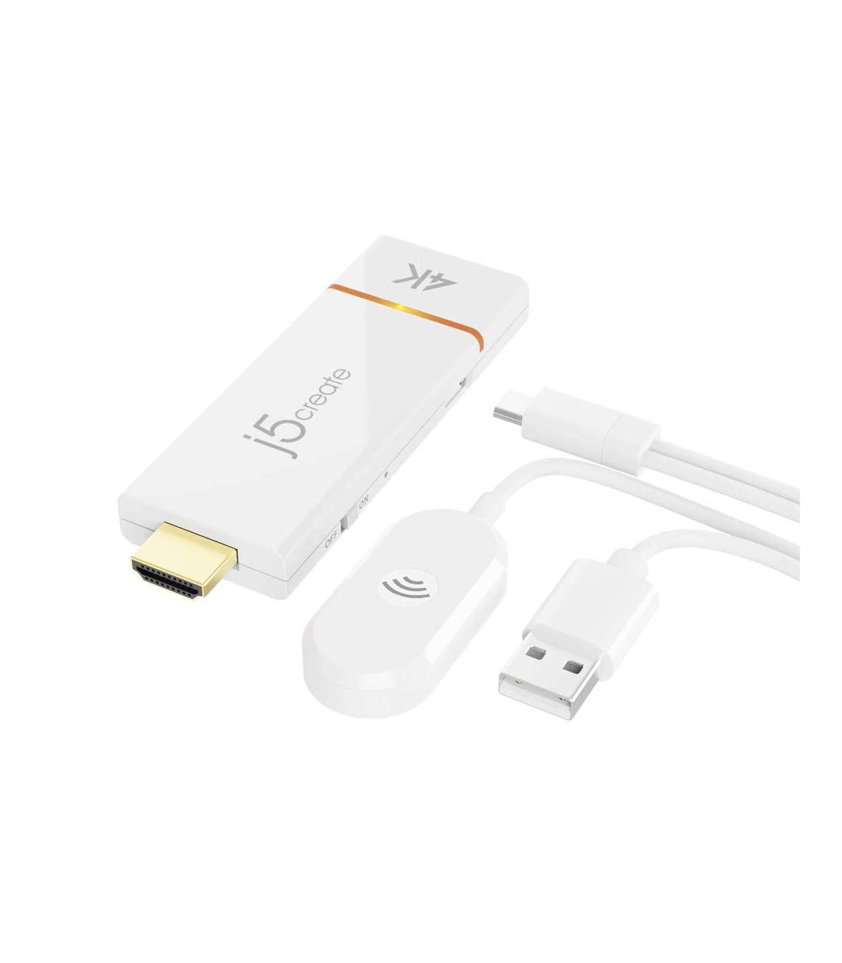 Audio/video wireless transmitter and receiver j5create JVAW76 Screencast 4K Wireless Display Adapter white