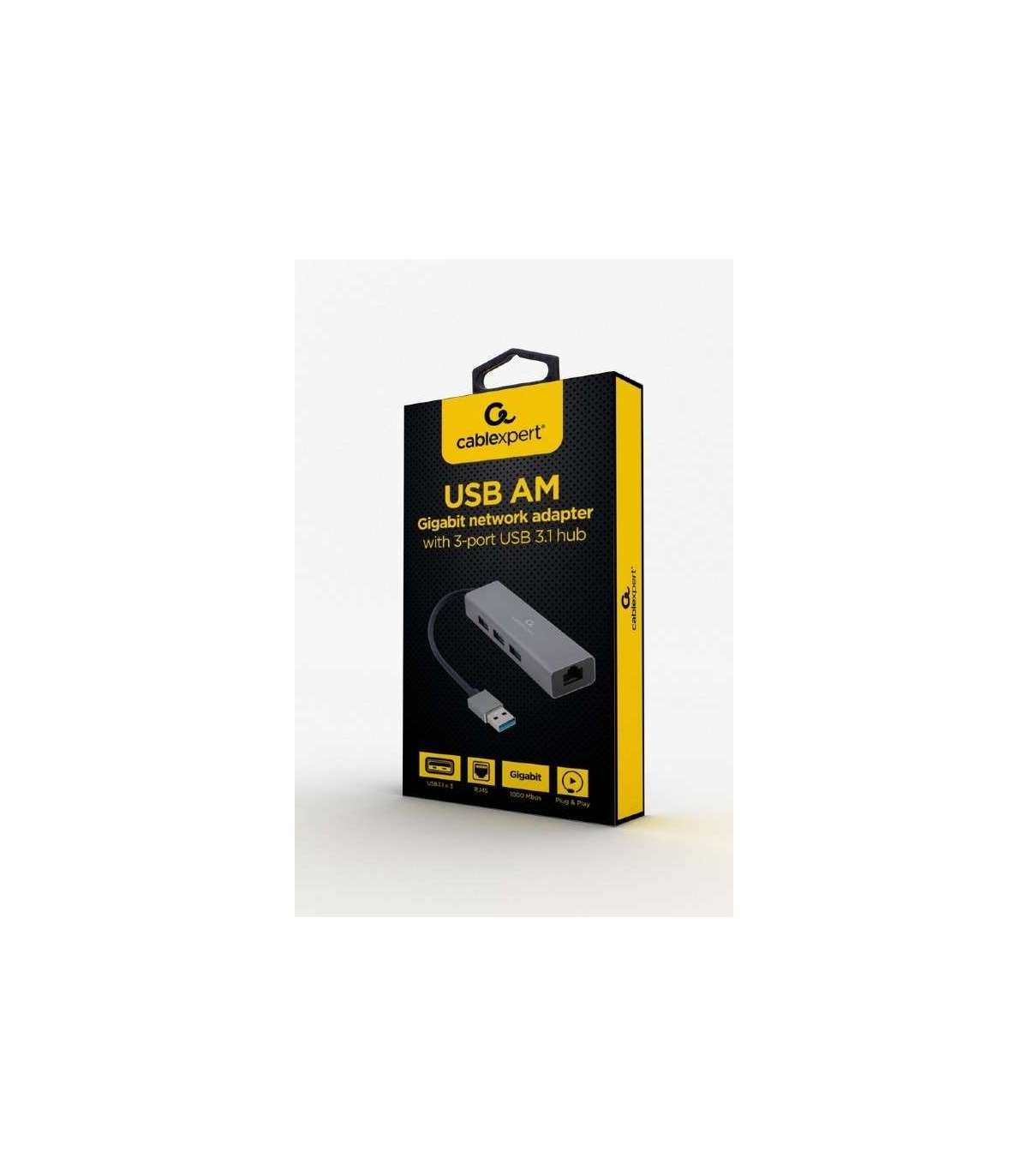 Cablexpert | USB AM Gigabit network adapter with 3-port USB 3.0 hub | A-AMU3-LAN-01