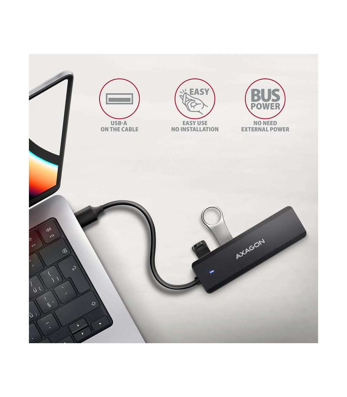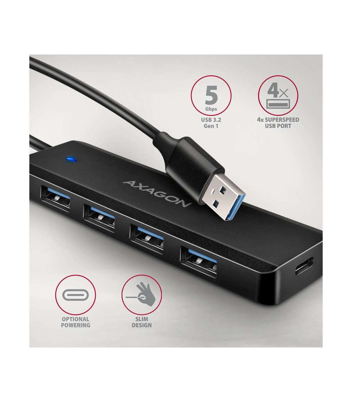 AXAGON Travel four-port USB-A 5Gbps hub | HUE-C1A