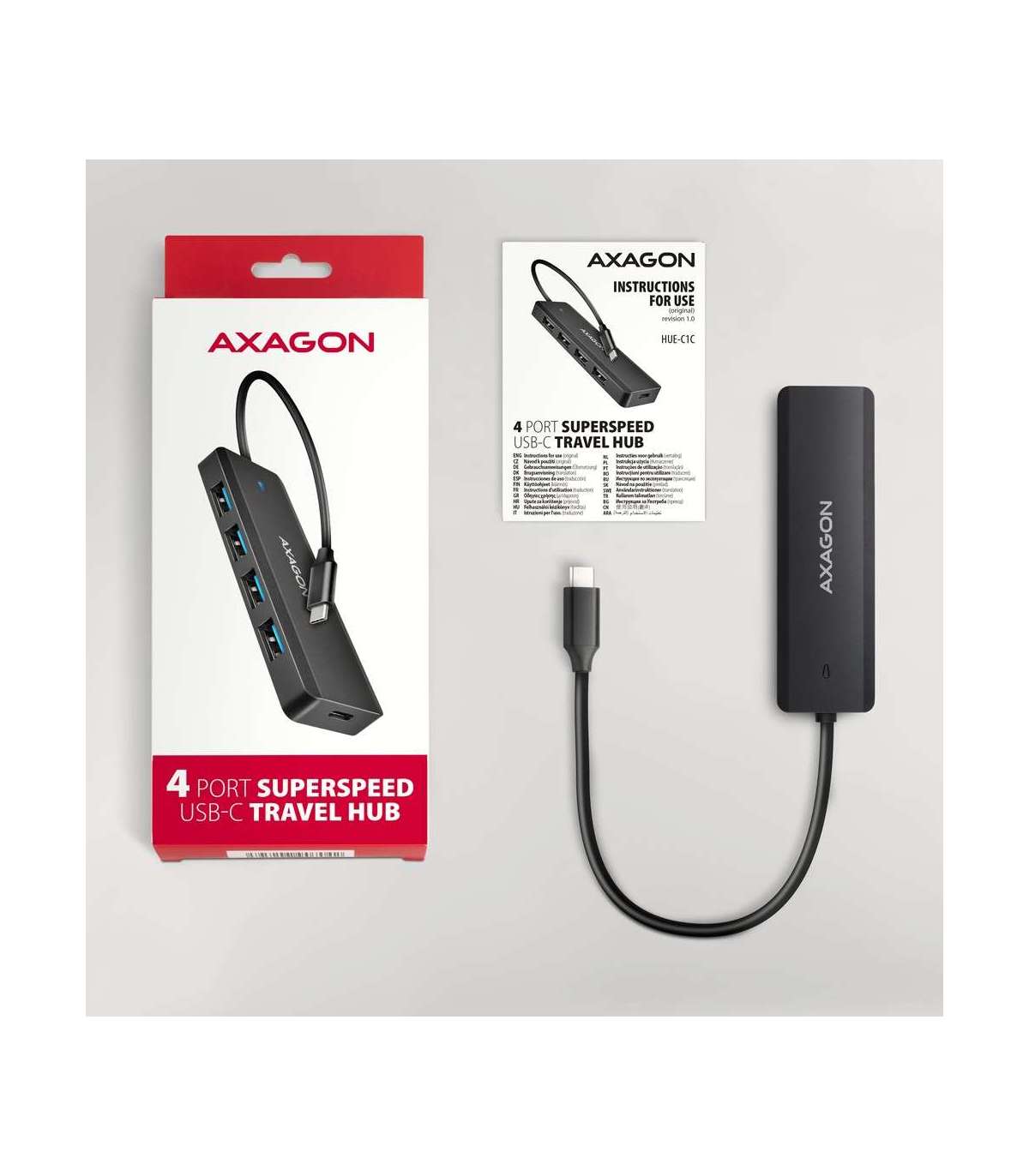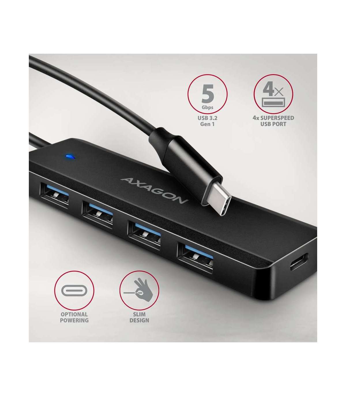 AXAGON Travel four-port USB-C 5Gbps hub | HUE-C1C