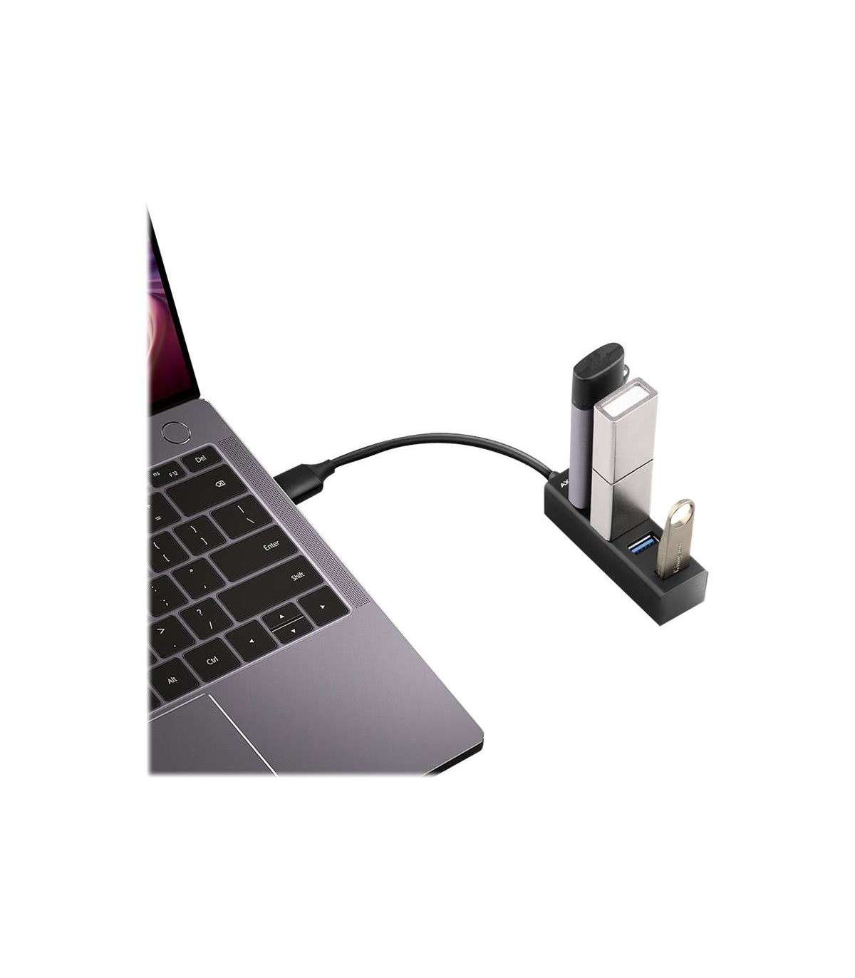 - Miniature metal four-port USB 3.2 Gen 1 hub
