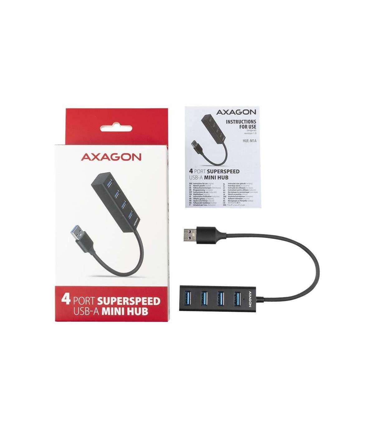 AXAGON Miniature metal four-port USB 3.2 Gen 1 hub | HUE-M1A