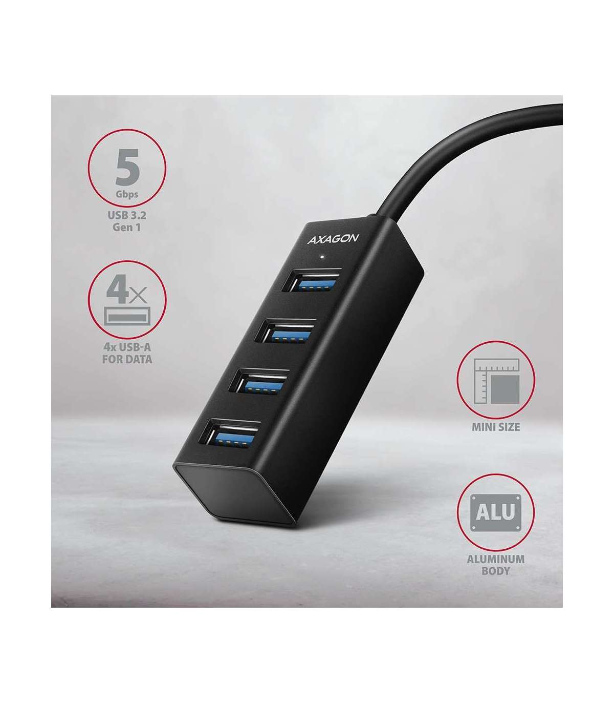 AXAGON Miniature metal four-port USB 3.2 Gen 1 hub | HUE-M1AL