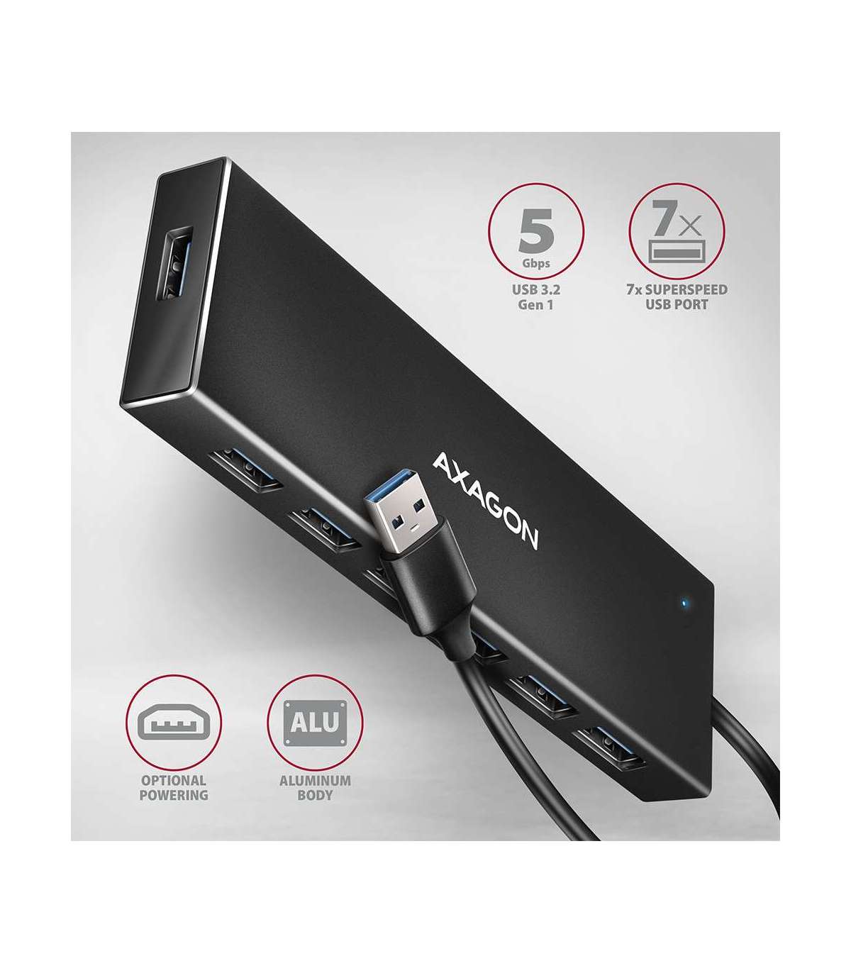 AXAGON SuperSpeed USB-A FLAT Hub | HUE-F7A