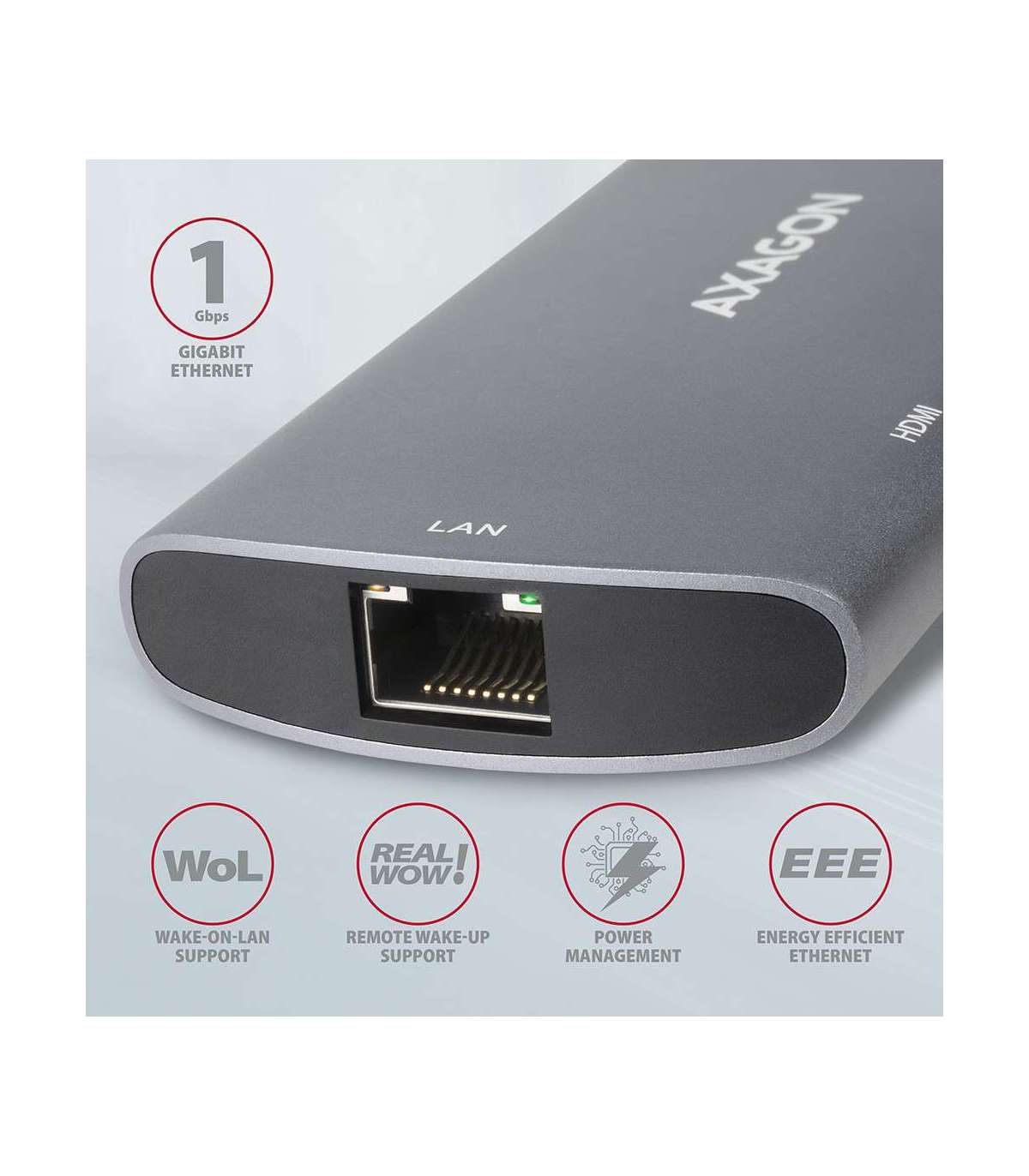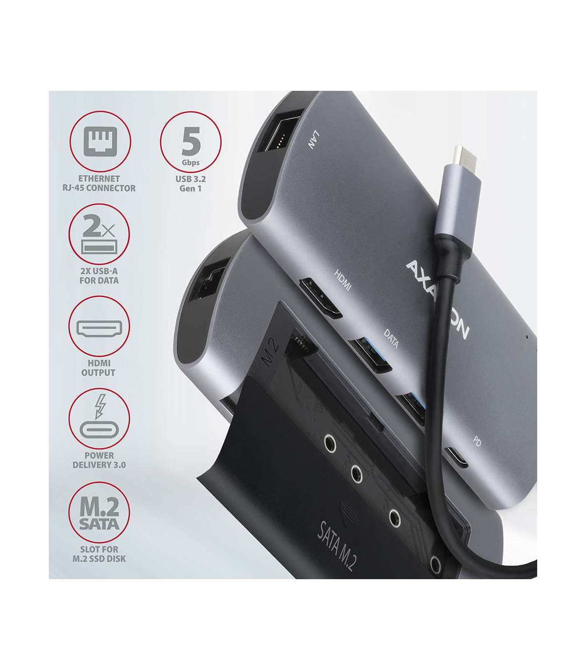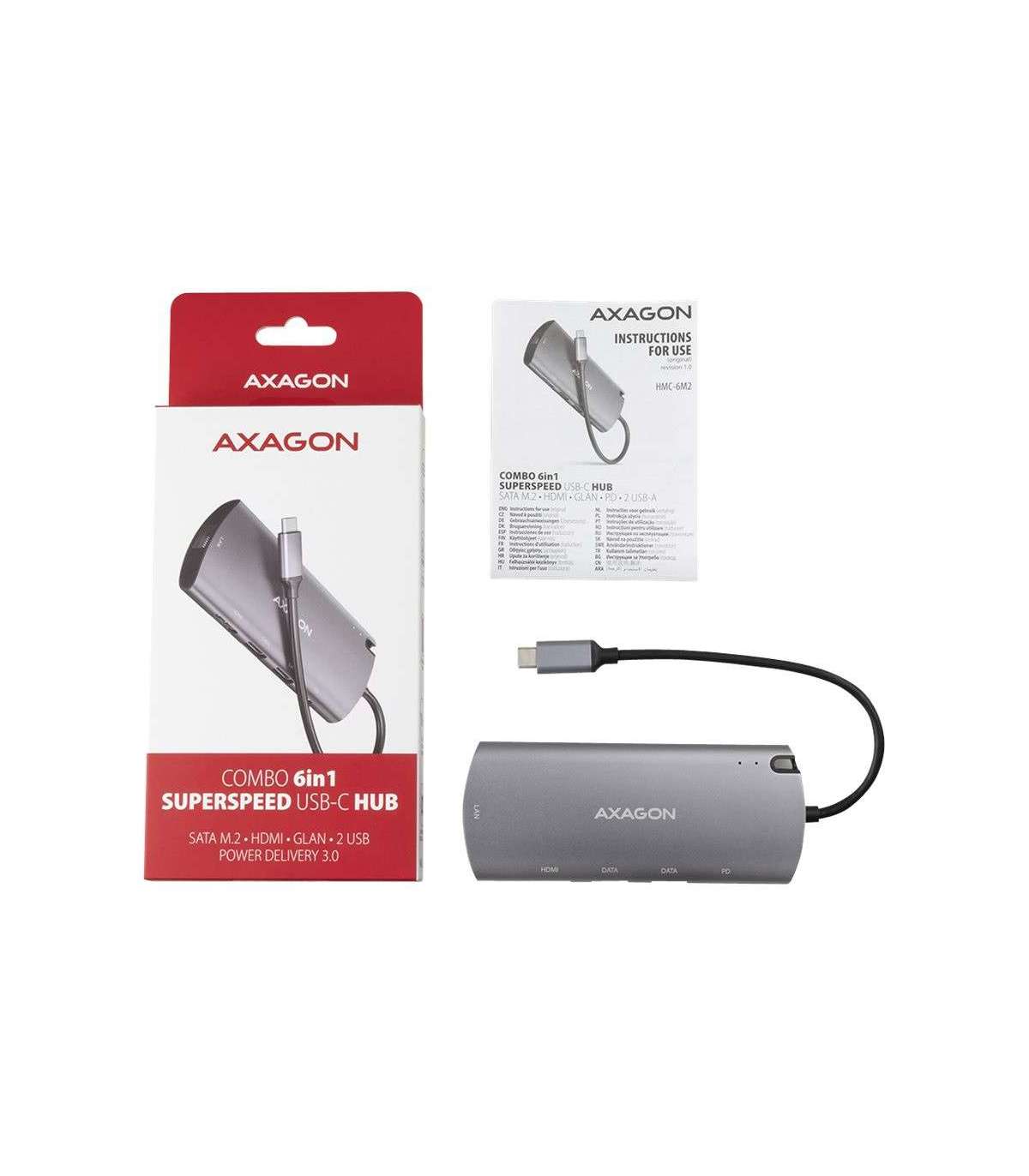 AXAGON SuperSpeed USB-C Combo 6in1 Hub HMC-6M2
