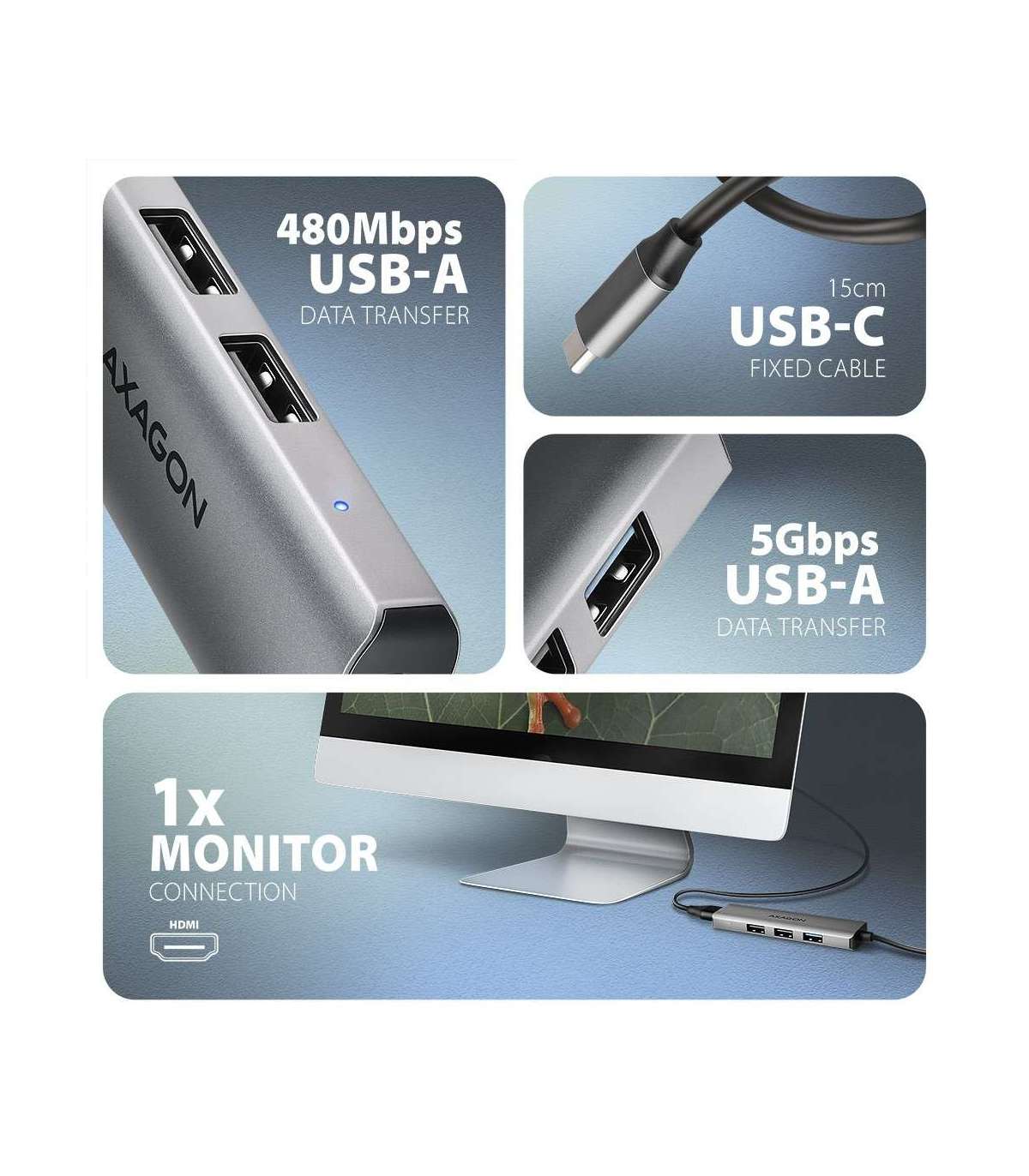 AXAGON USB-C 5Gbps STARTER 4in1 Hub | HMC-H3A