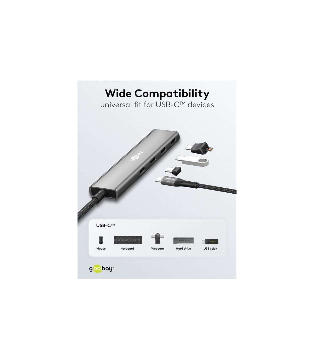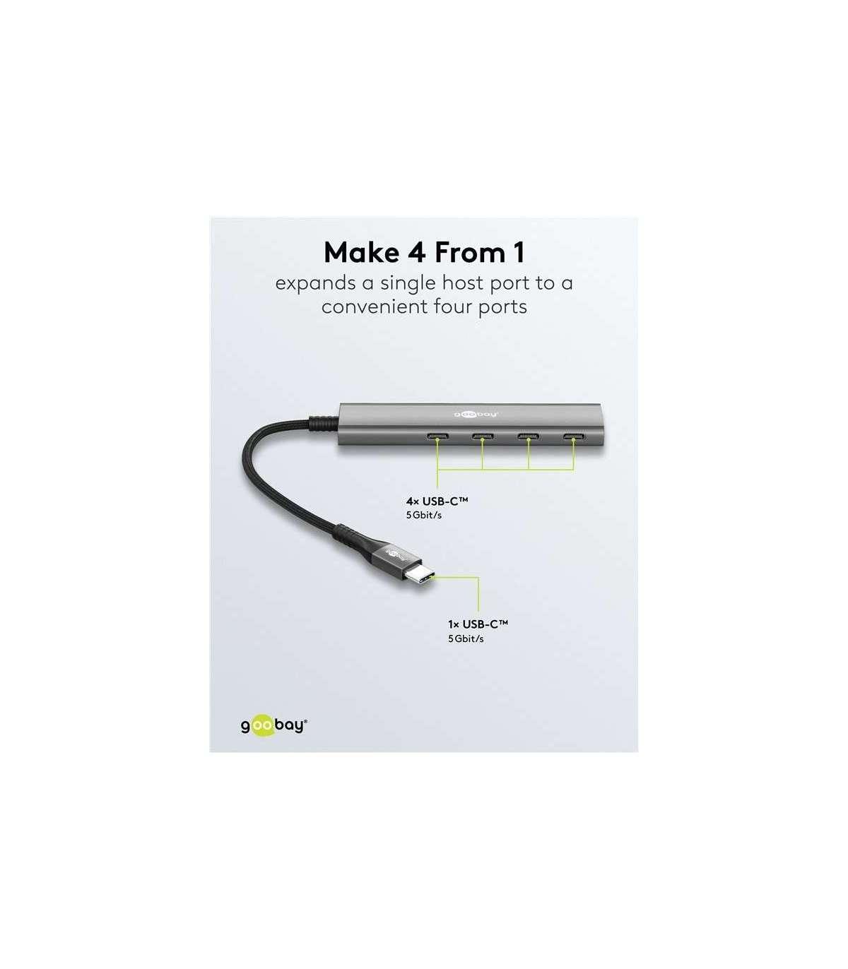 Goobay 76564 Slim 4-Port USB-Hub, USB-C™ auf USB-C™, 5 Gbit/s, Grey | Goobay