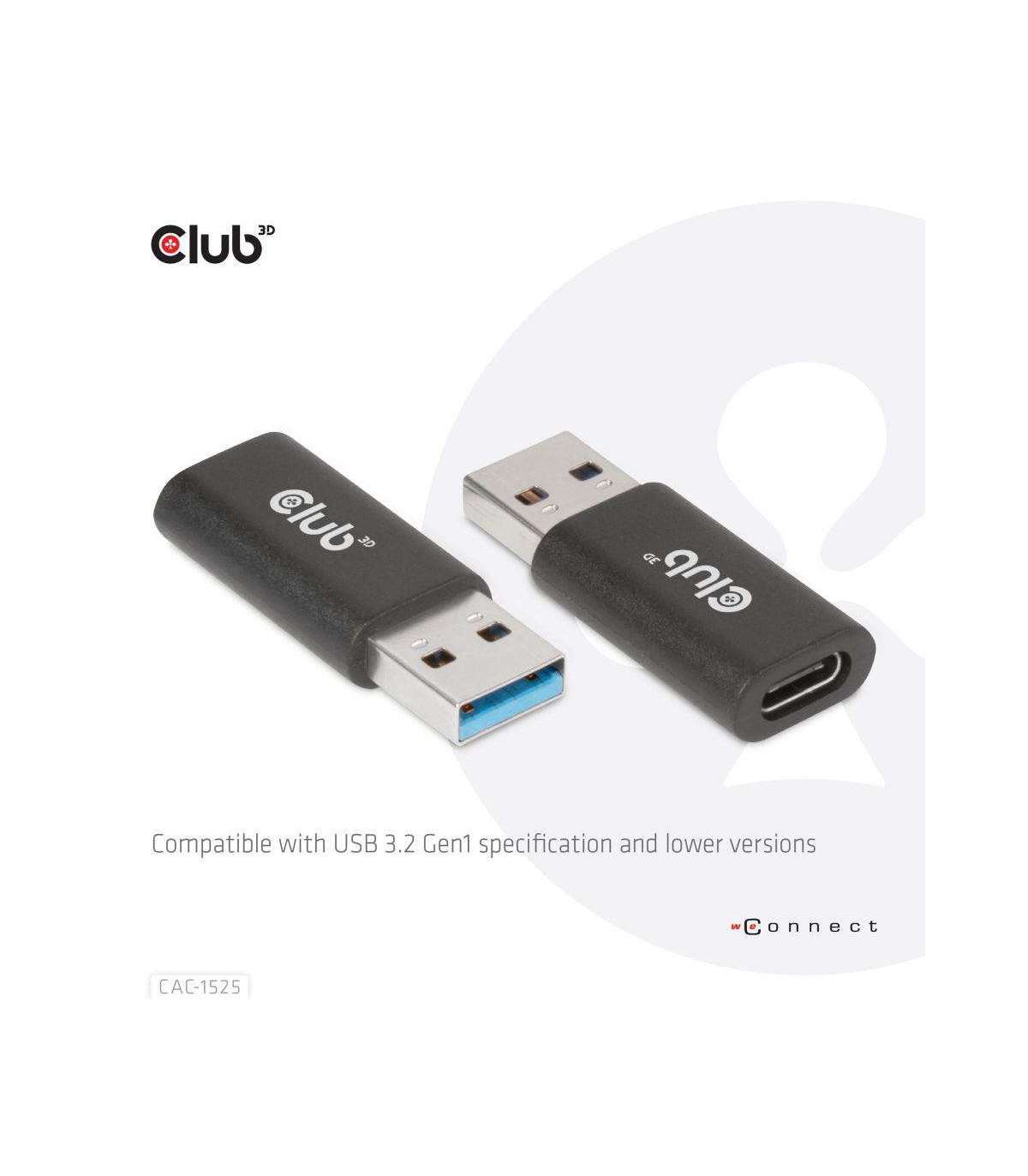 CAC-1525 The Club 3D USB 3.2 Gen1 Type A to USB 3.2 Gen1 Type C Adapter which allows you to connect your host PC with USB-A port to devices (such as USB disk, mobile phone) with Type-C port for downstream data and power. Besides, you can also connect a Type-C to USB hub to your USB-A host PC through this product for downstream data and power transmission.