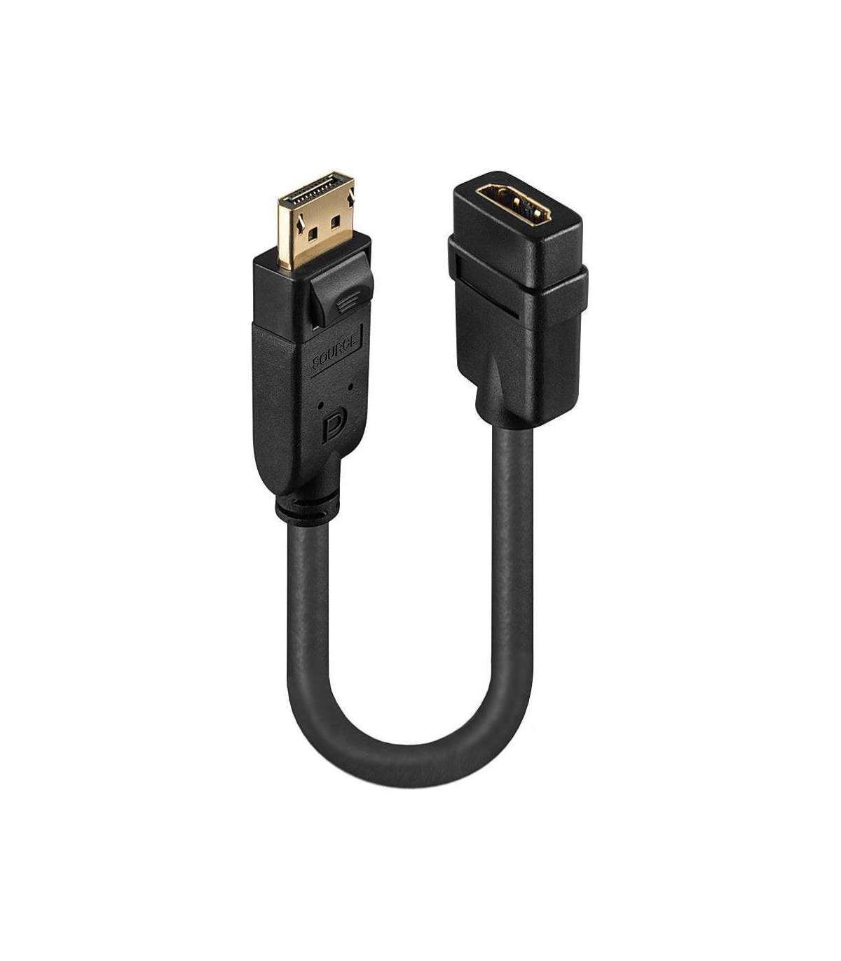 Connects a DisplayPort source to an HDMI monitor