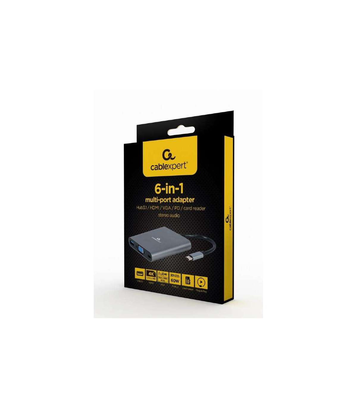 I/O ADAPTER USB-C TO HDMI/USB3/6IN1 A-CM-COMBO6-01 GEMBIRD