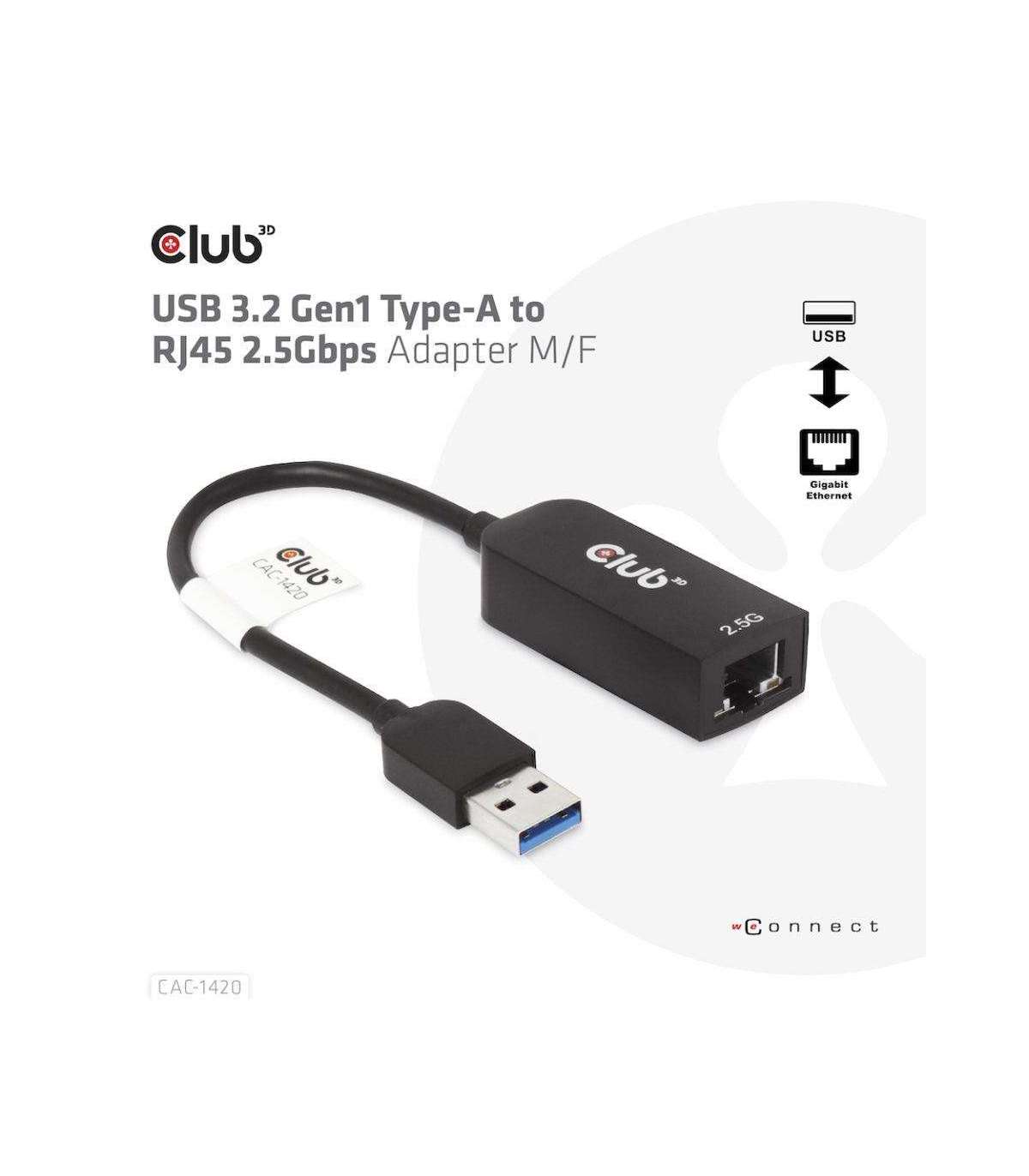 The Club 3D CAC-1420 USB 3.2 Gen1 Type-A to RJ45 2.5Gbps Ethernet Adapter. It enables a Fast Ethernet network connection capability for desktops, notebooks or Ultrabook’s with a standard USB 3.2 Gen 1 Type-A port.