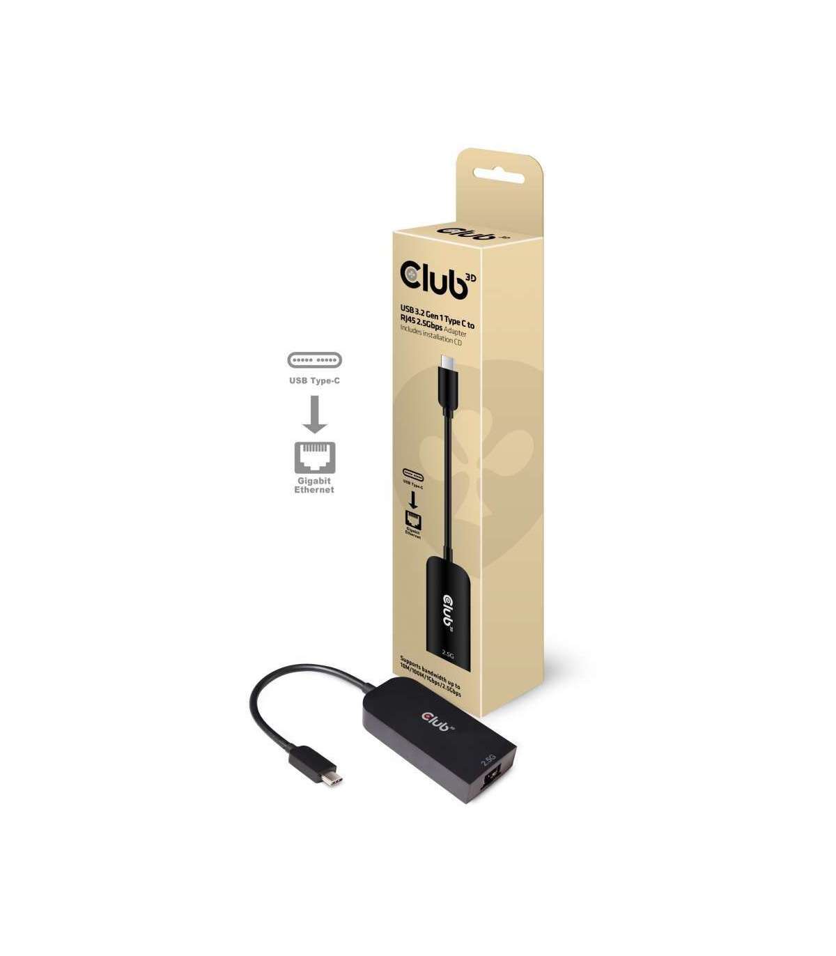 CAC-1520 - The Club 3D USB 3.2 Gen1 Type C to RJ45 2.5Gbps Ethernet Adapter. It enables a Fast Ethernet network connection capability for desktops, notebooks or ultrabooks with a standard USB 3.2 Gen 1 Type C port.