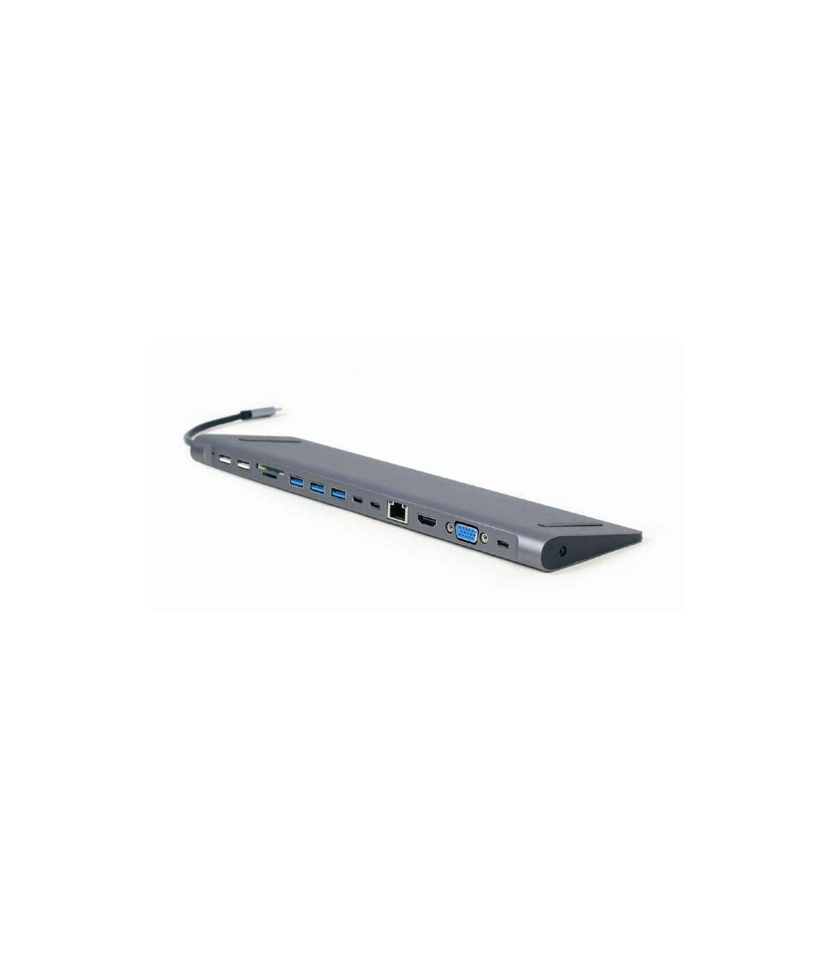 - 9-in-1 functions: USB hub, 4K HDMI and Full HD VGA video, stereo audio, Gigabit LAN port, card reader and USB Type-C PD charge support