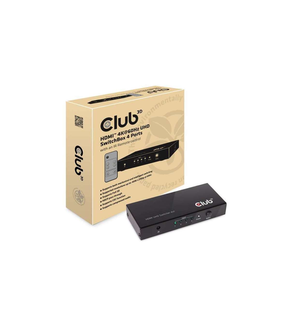 CSV-1370 - The Club 3d HDMI™ 2.0 UHD 4K60Hz SwitchBox 4 Ports is a high performance and small-sized HDMI™ 2.0 UHD 4K60Hz Switcher with four inputs and one output. It has a mat black metal casing, which make it very strong and sturdy. An ideal assistant both at home and in the workplace. This HDMI™ SwitchBox routes high definition video, in resolutions up to 4K @ 60Hz, and digital audio from any of the 4 source inputs to the connected 4K UHD television, monitor or projector.