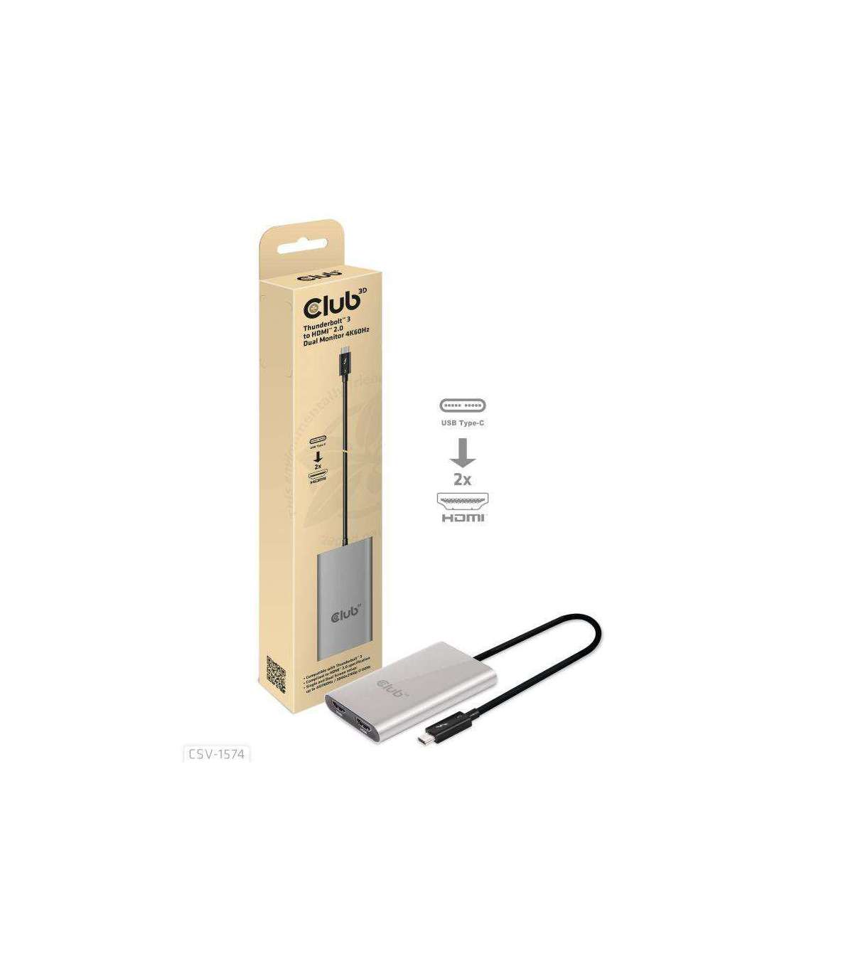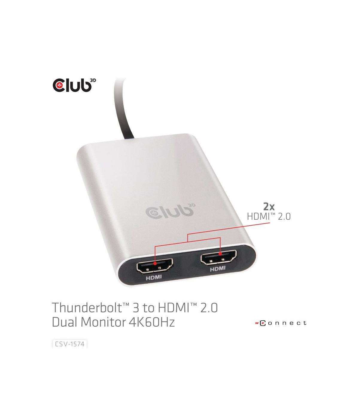 CSV-1574 - The Thunderbolt™ 3 to HDMI™ 2.0 Dual Monitor 4K60Hz lets users easily connect two HDMI™ 2.0 Screens to any device with a Thunderbolt™ 3 interface. This unique adapter is compatible with both Mac OS and Windows™ 10. The output resolution supported is up to 4K@60Hz for Single Screen and Dual Screen setups. It is fully Plug & Play, so no need for driver installation. This stylish adapter has a beautiful Brushed Aluminum Casing making it strong and light.