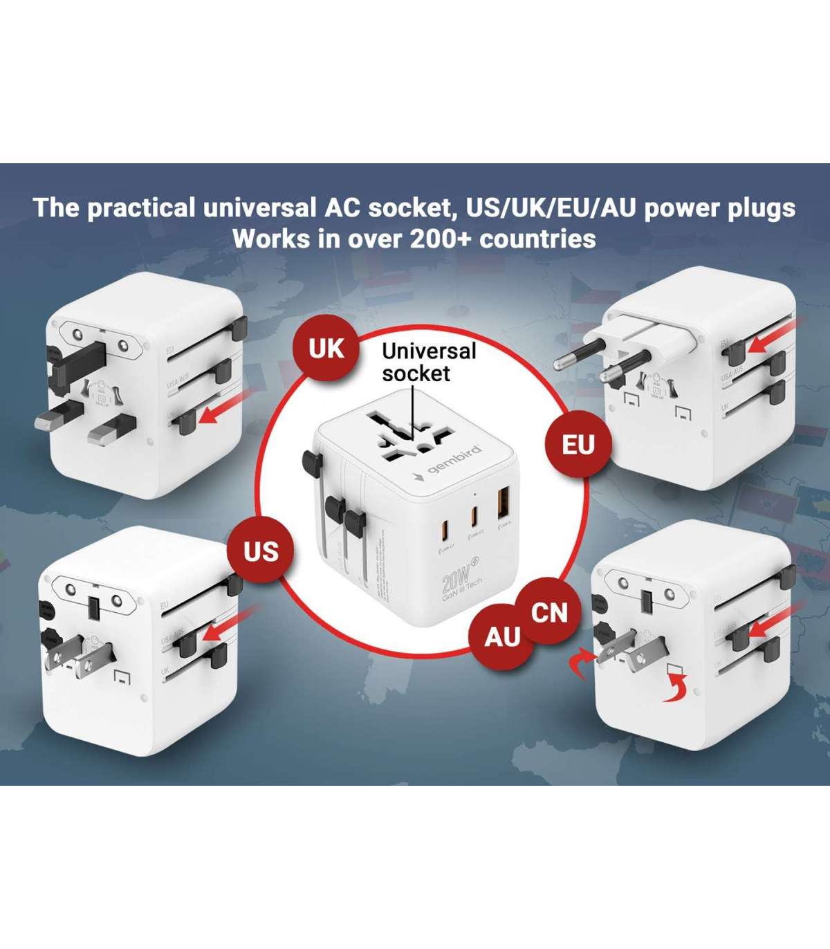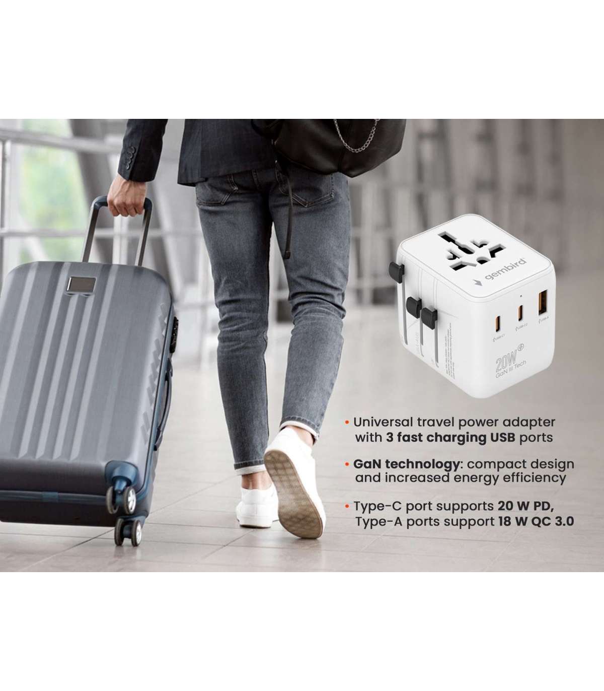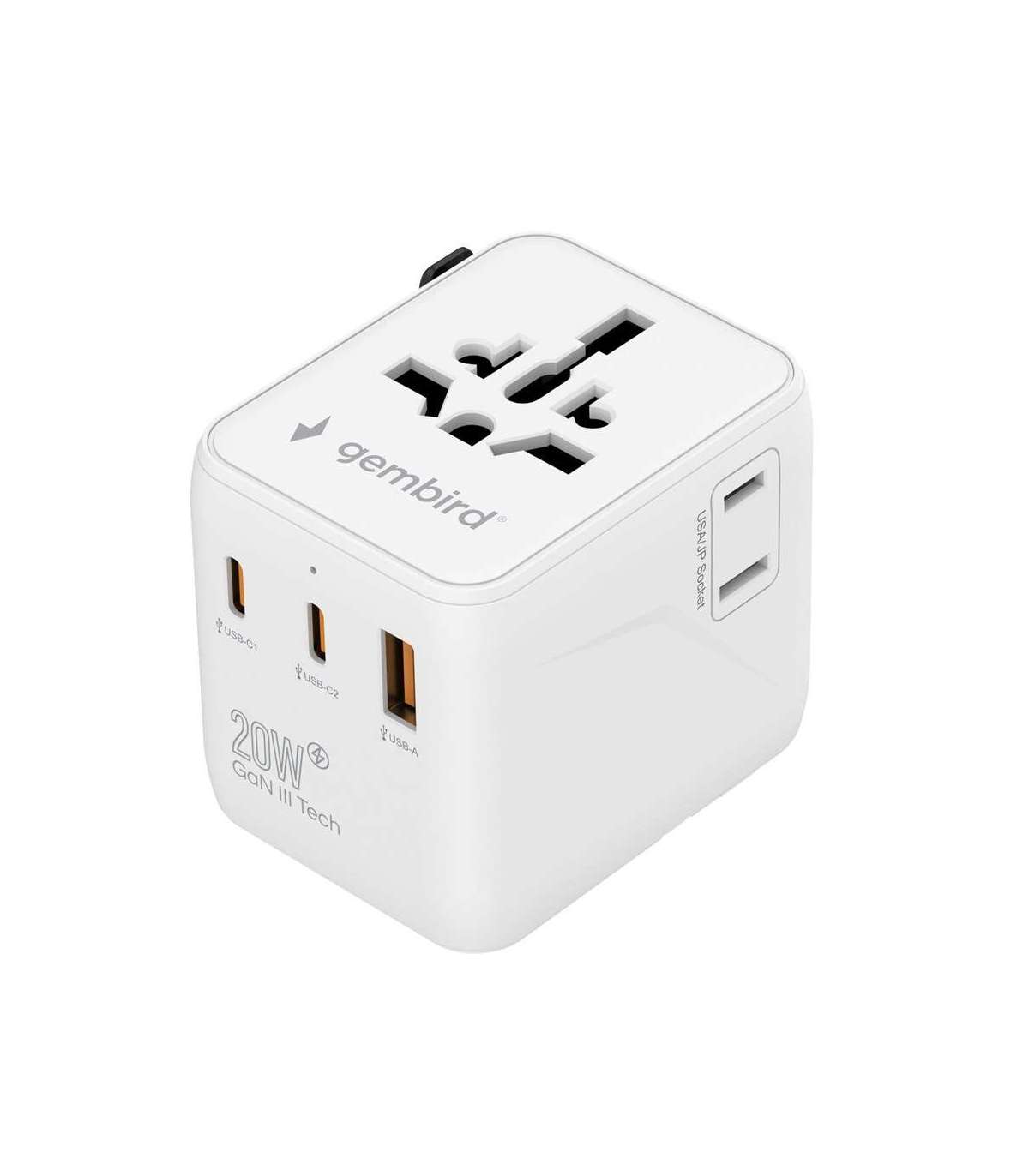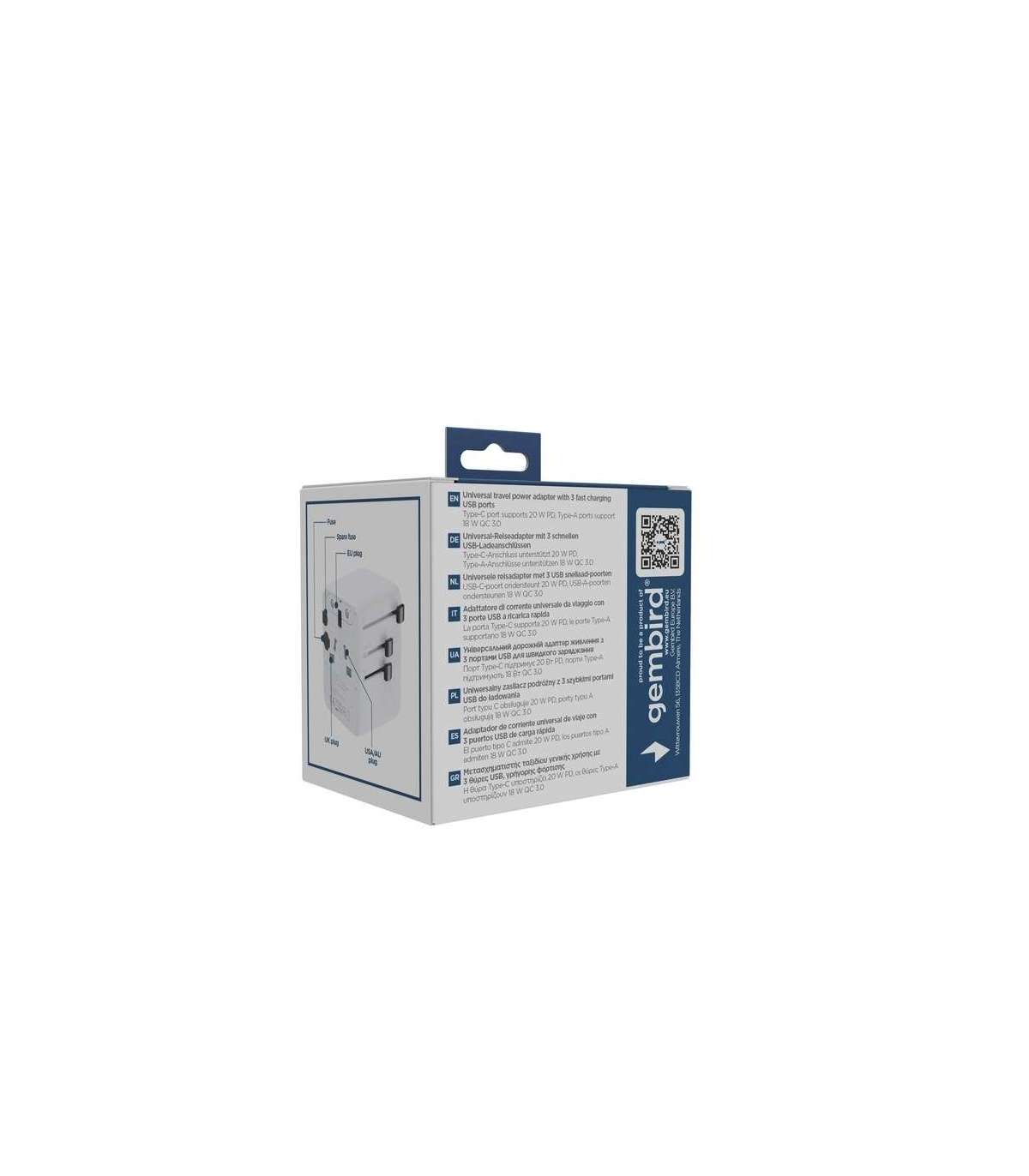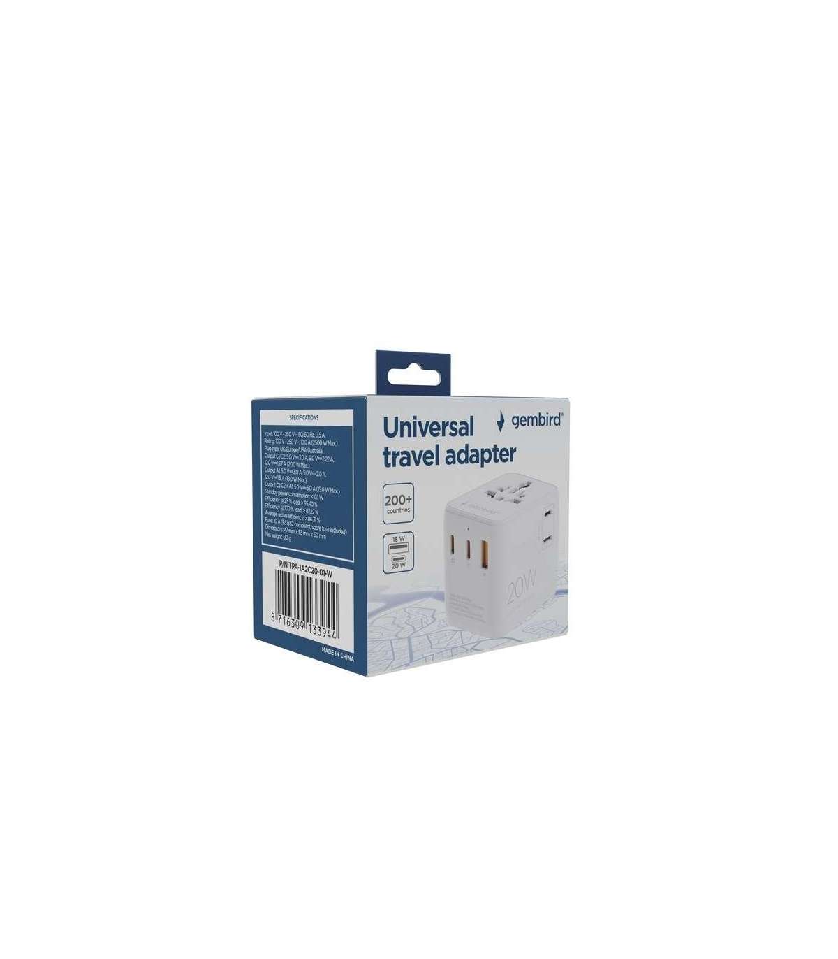 Gembird TPA-1A2C20-01-W Universal travel power adapter, 20 W, white
