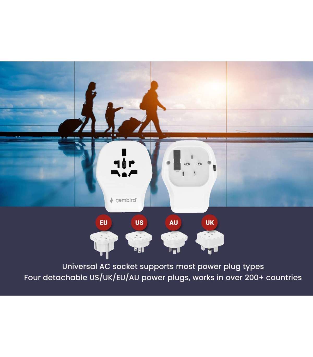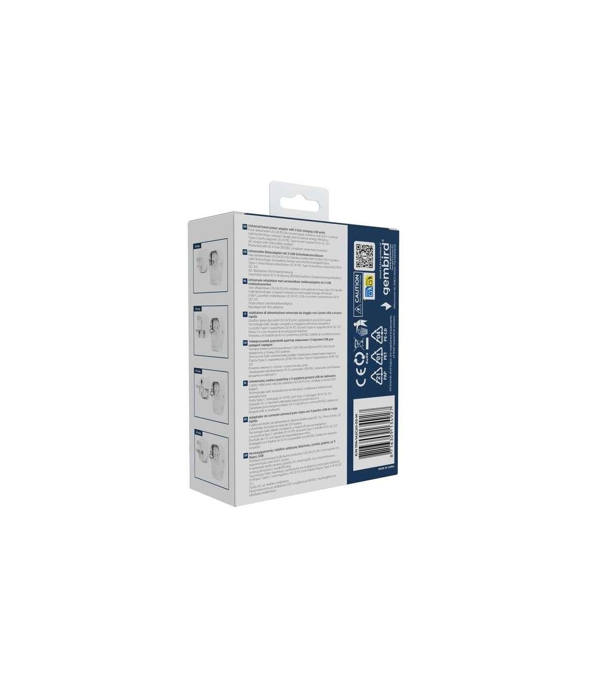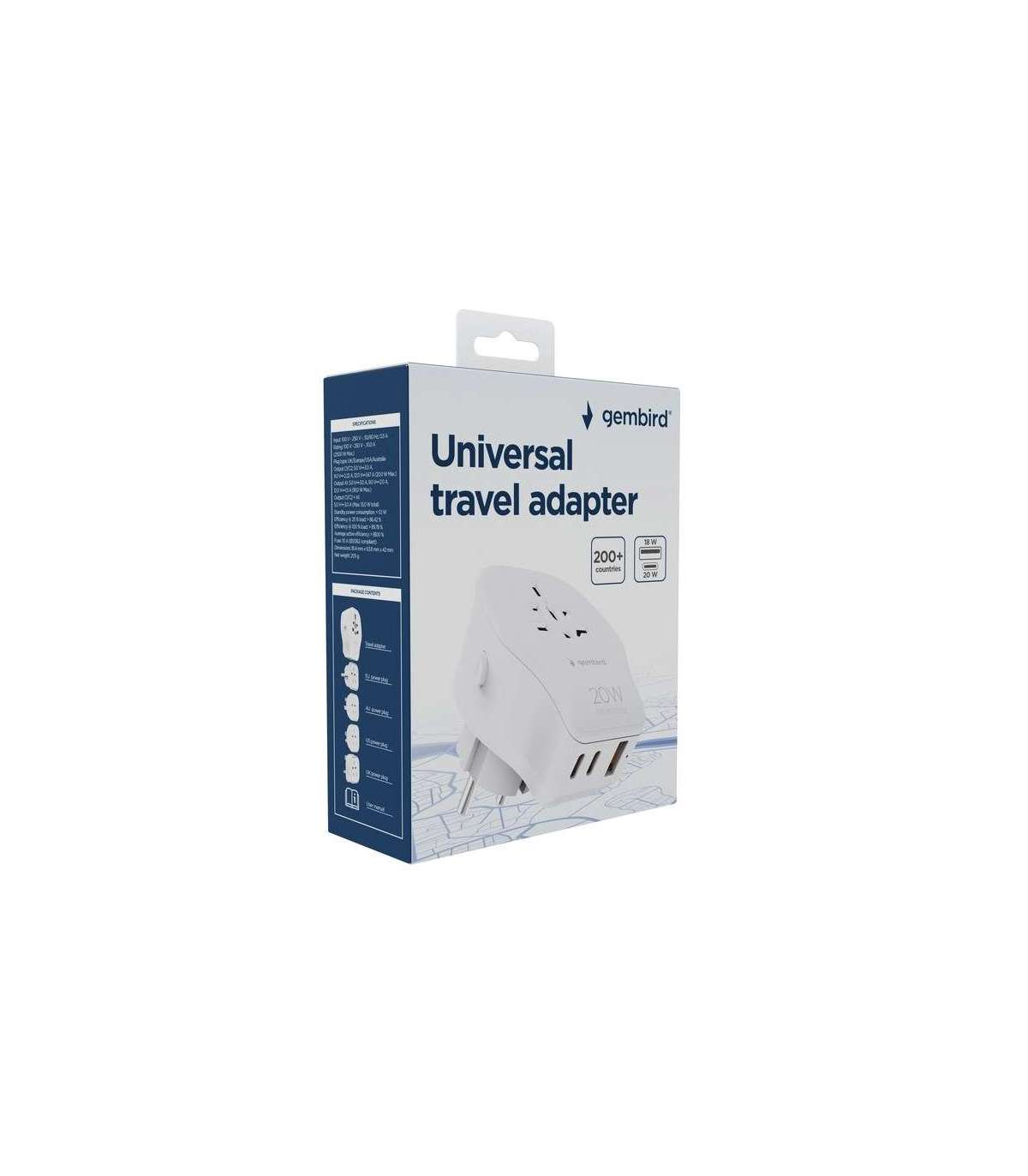 Gembird TPA-1A2C20-02-W Universal travel power adapter, 20 W, white