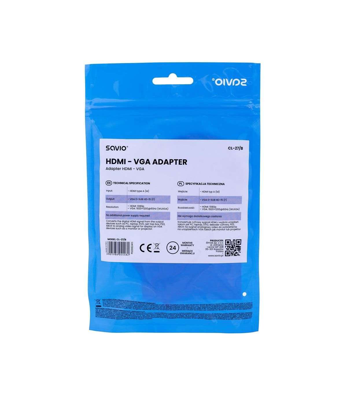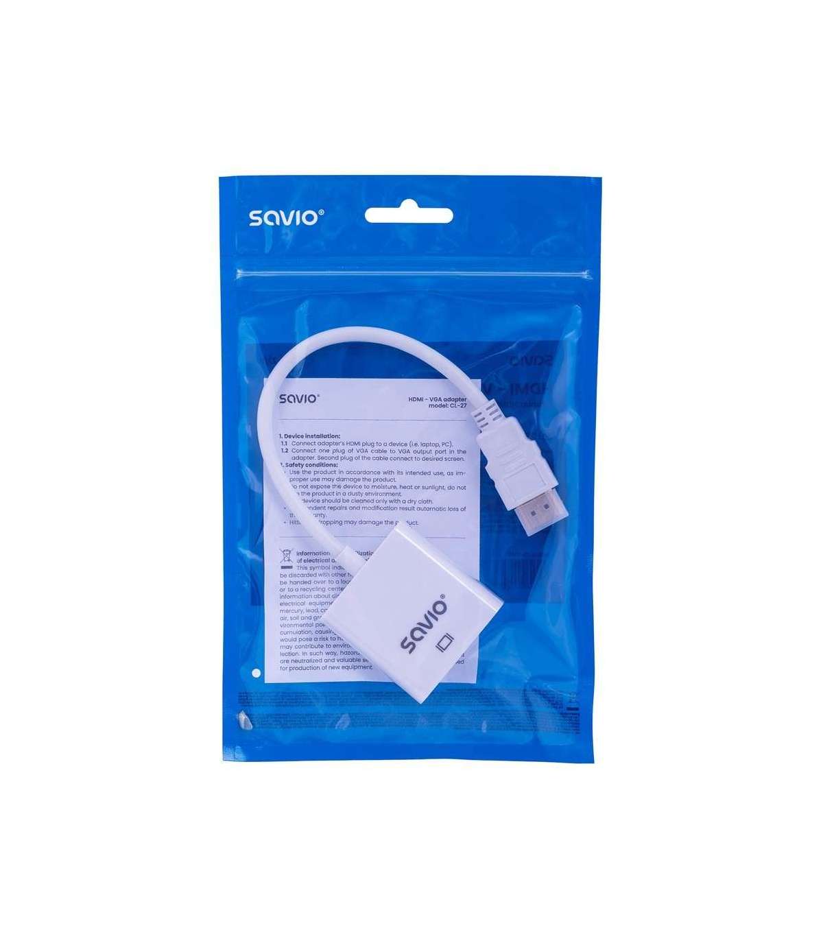 Savio CL-27B video cable adapter 0.1 m HDMI Type A (Standard) VGA (D-Sub) White