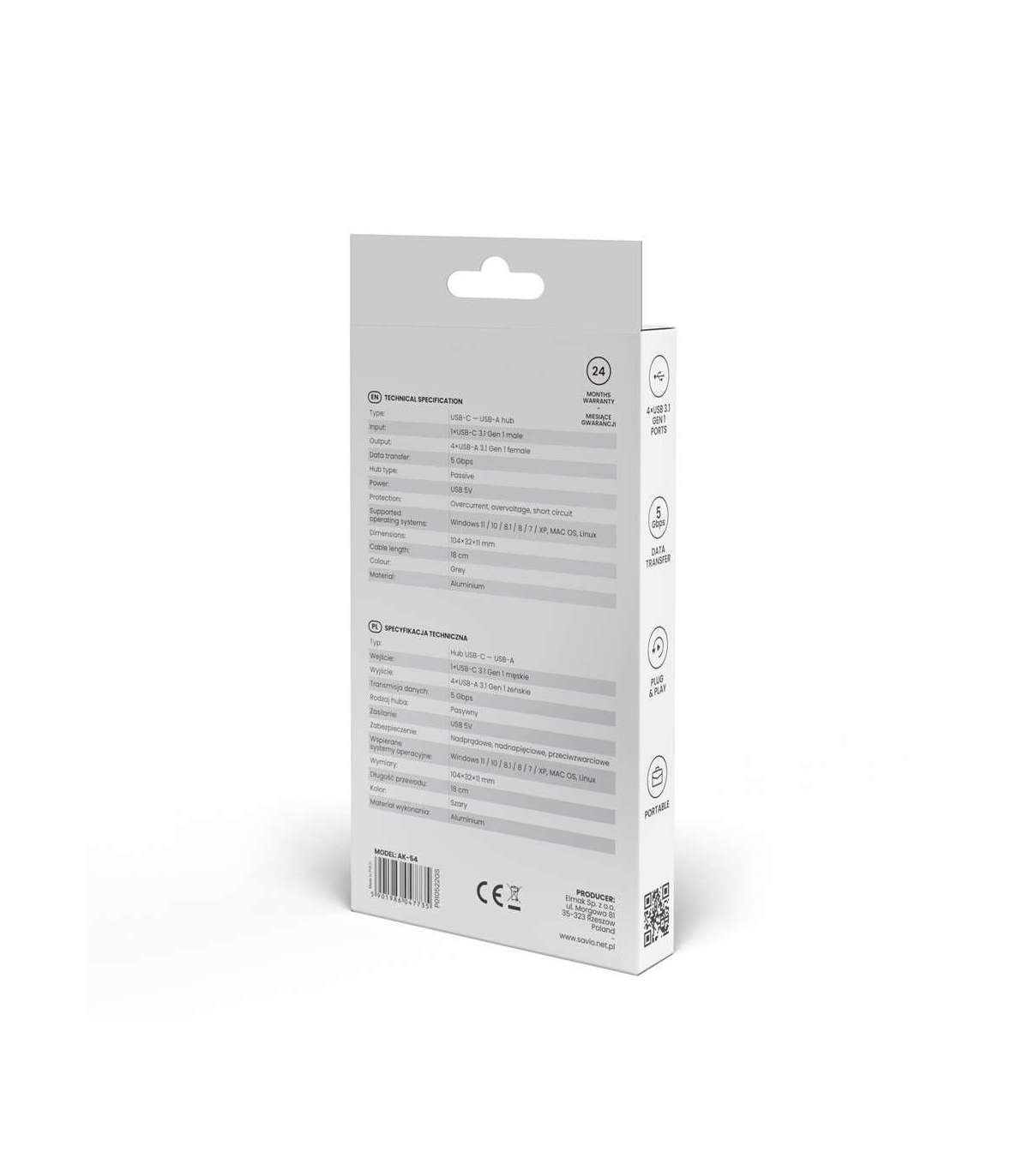 SAVIO Hub USB-C - 4 x USB-A, AK-54