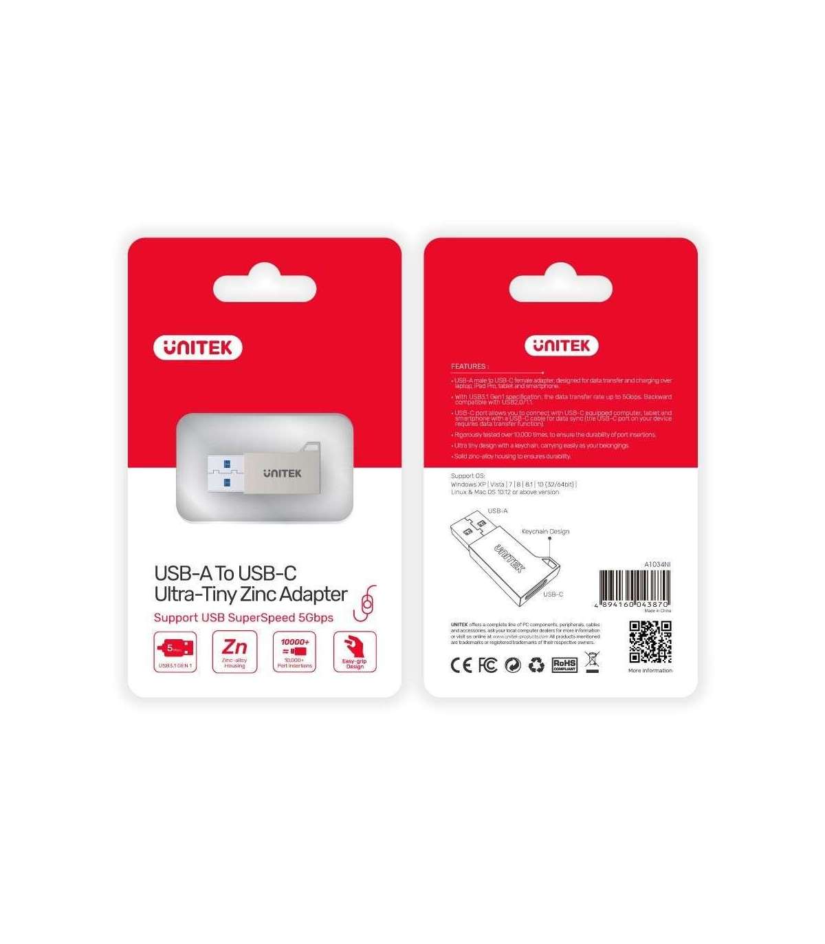 UNITEK USB-A TO USB-C 3.1 GEN1 ADAPTER, A1034NI