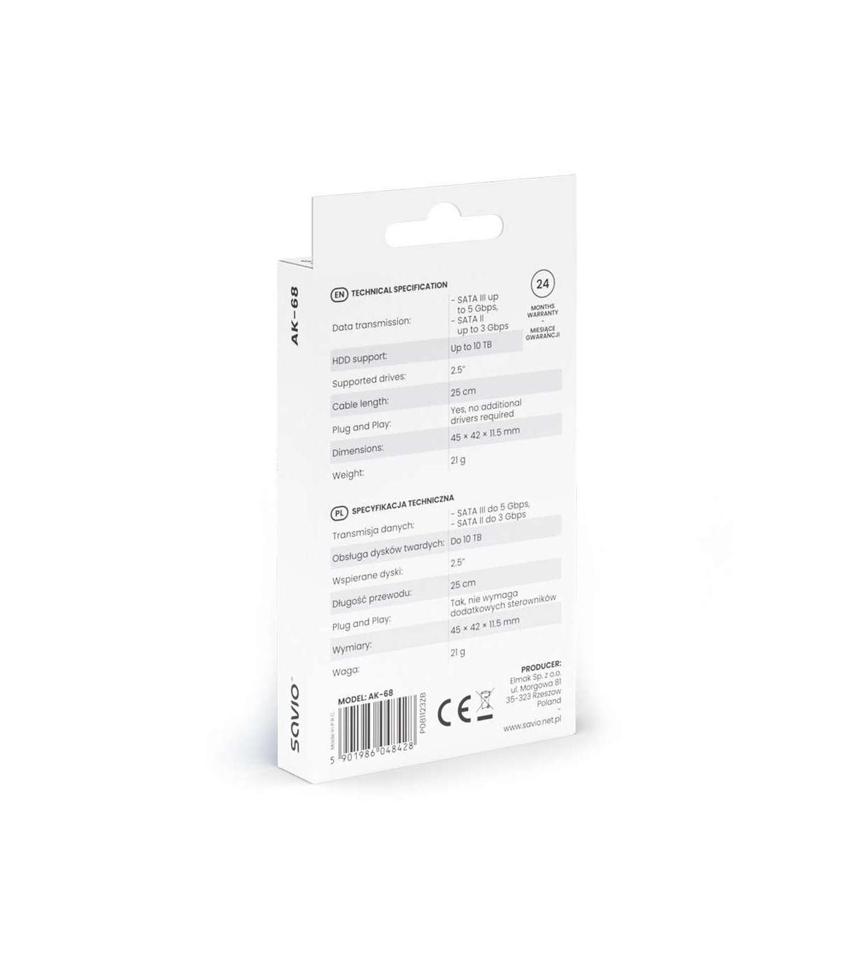 SAVIO AK-68 Adapter USB-A 3.1 Gen 1 (M) - SATA (F) for 2.5" drives