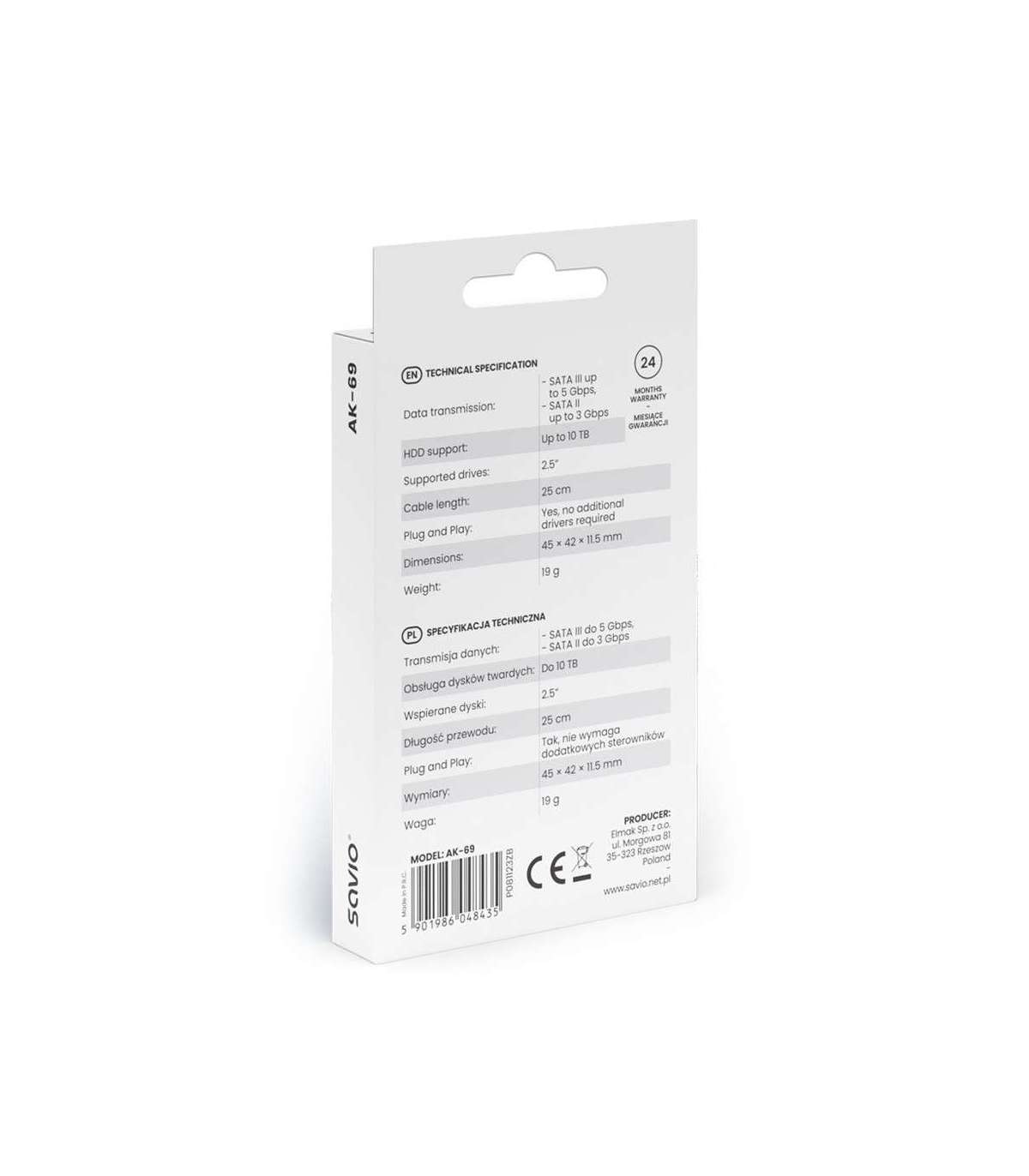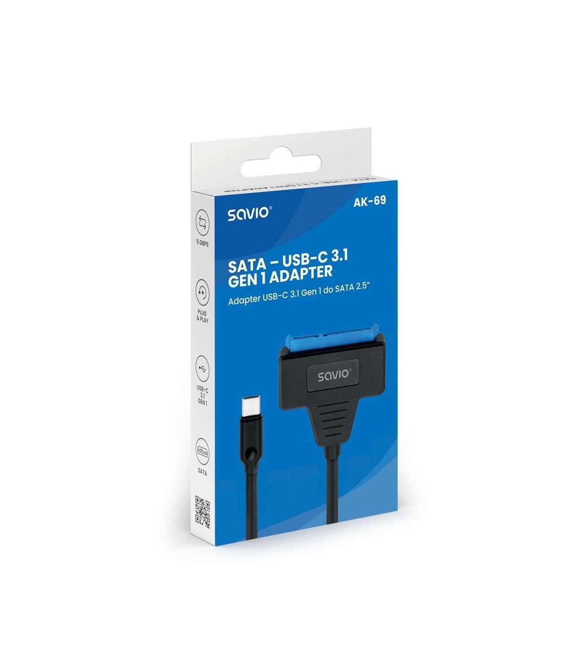 SAVIO AK-69 Adapter USB-C 3.1 Gen 1 (M) - SATA (F) for 2.5" drives