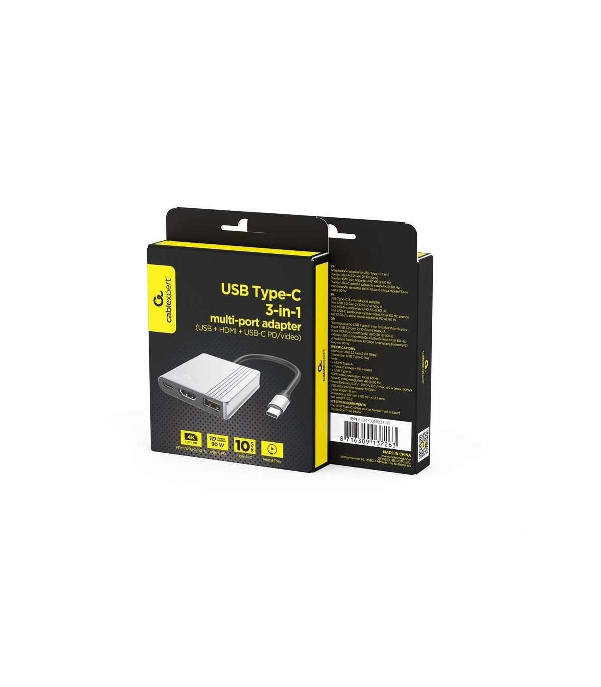 GEMBIRD USB TYPE-C 3-IN-1 MULTI-PORT ADAPTER GREY