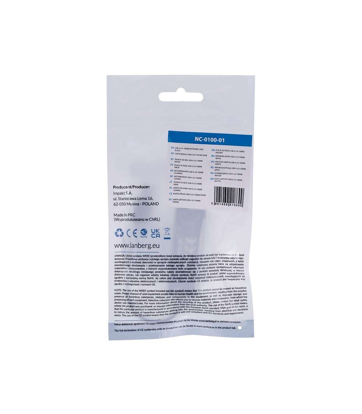 Lanberg NC-0100-01 cable interface/gender adapter USB-A RJ-45 Black