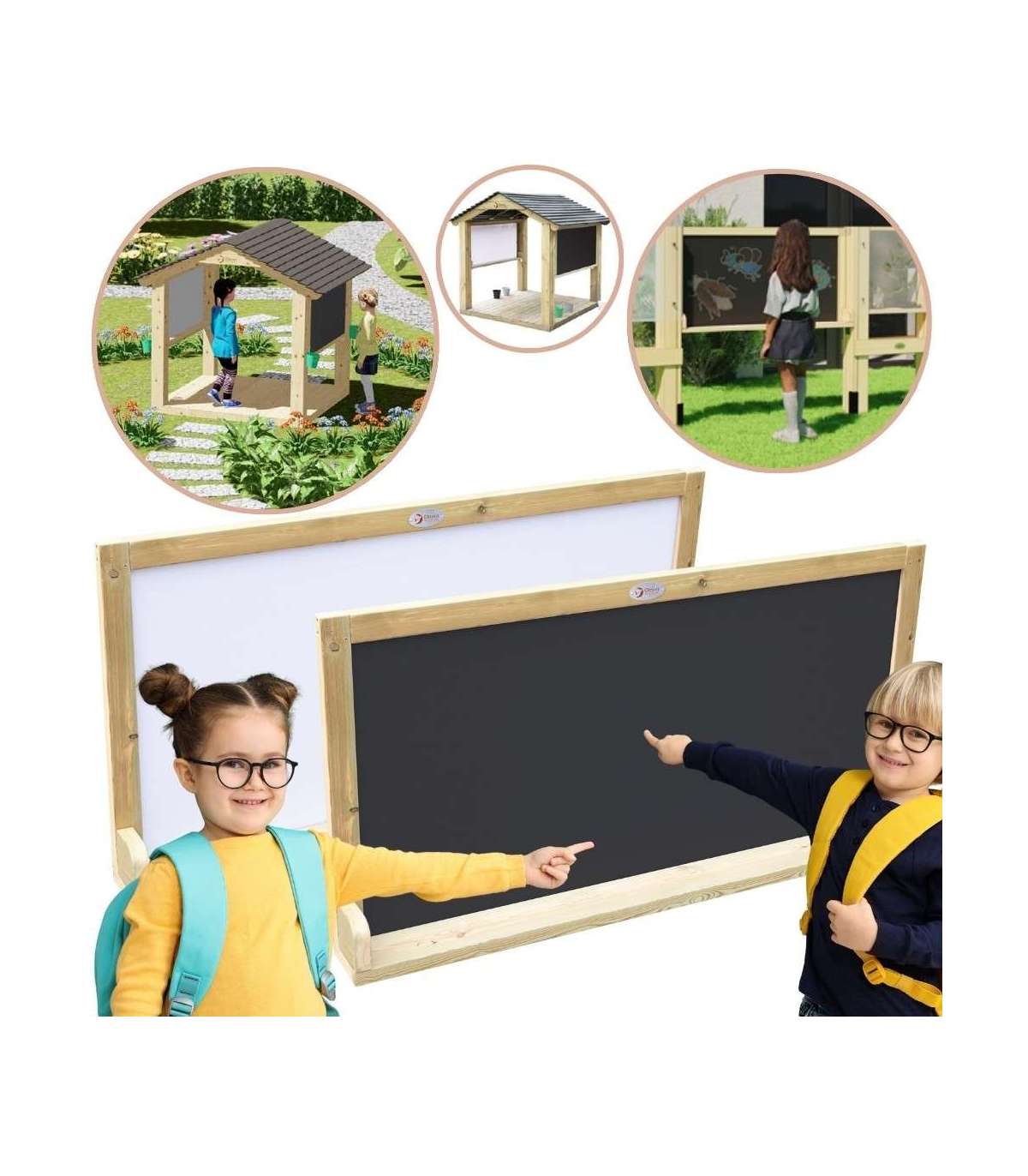 Tahvlite komplekt brändilt CLASSIC WORLD on suurepärane valik nii lapse toas, aias kui ka haridusasutustes tänu oma m mitmekülgsusele. Komplekt sisaldab magnettahvlit, mis sobib markerite jaoks, ja kriiditahvlit, mis sobib erinevat tüüpi kriitide kasutamiseks. Mõlemad tahvlid sobivad suurepäraselt kirjutamise, arvutamise ja loomingulise mängu harjutamiseks. Lapsed saavad kasutada magnetilisi tarvikuid loovuse ja kujutlusvõime arendamiseks ning kriiditahvel muutub ideaalseks kohaks värvikate jooniste loomiseks. Komplekt sobib ka paigaldamiseks Classic Worldi puidust varjualustesse (nt mudel CW70157), luues erilise väliloomemaja lastele või praktilised kunstilised seinad.