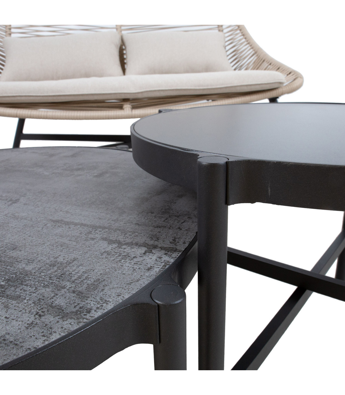Aiamööblikomplekt HELSINKI diivan, 2 tooli ja 2 lauda. Komplekti kõigi osade jalad ja raamid on valmistatud alumiiniumist ja viimistletud tumehalli pulbervärviga. Diivani ja toolide istmed on kaetud bee˛i plastikpunutisega. Istmepadjad kuuluvad komplekti. Padjakatted on valmistatud bee˛ist polüesterkangast. Suurem lauaplaat: kividekooriga ilmastikukindel komposiitplaat. Väiksema lauaplaat: tumehall karastatud klaas. Diivani mõõdud on 140x78xH83,5cm, tooli mõõdud on 71x78xH83,5cm, laudade mõõdud on D77xH35cm, D53xH43cm. Toode on muutlikes ilmastikutingimustes hästi vastupidav ja lihtsalt hooldatav. Kaitset ilmastikuolude eest vajavad ainult padjad. Välitingimustes kasutatava mööbli eluea pikendamiseks soovitame kasutada välimööbli katteid. HOIUSTAMINE: suvehooaja lõppedes soovitame aiamööblit hoiustada siseruumides. Puhastage ja kuivatage mööbel enne hoiule panekut. Kasutage hoiustamiseks kuiva ning hea ventilatsiooniga ruumi.