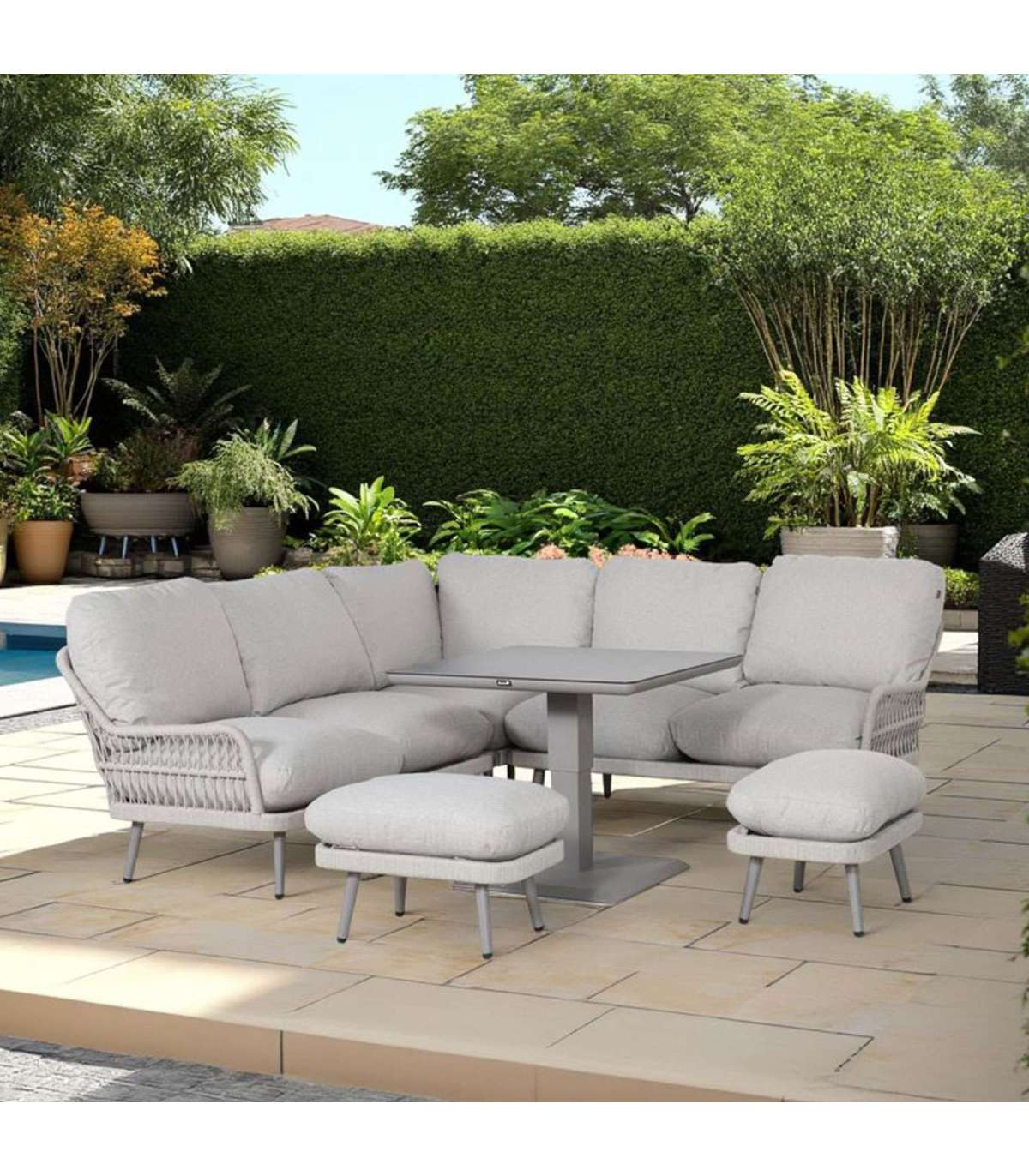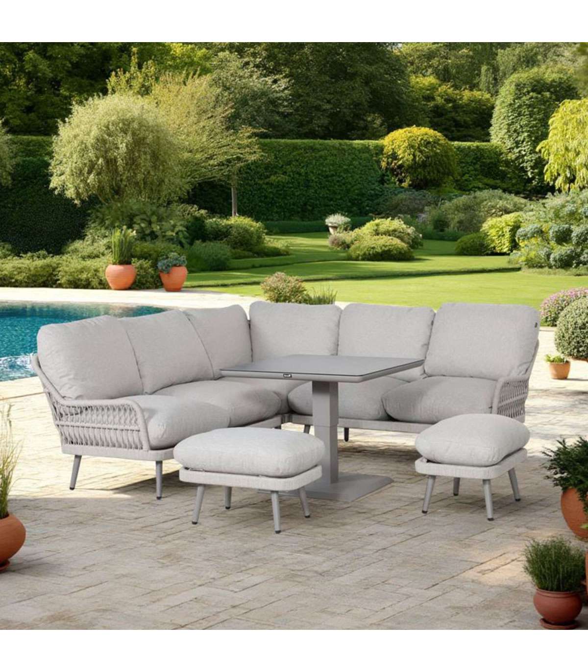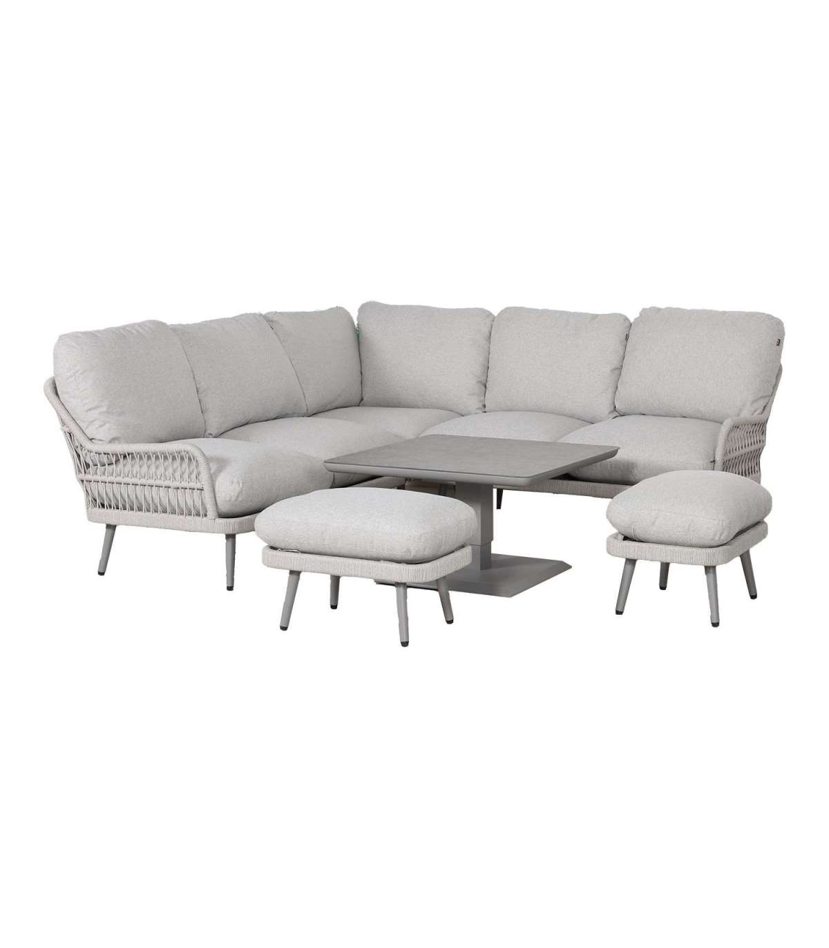 Aiamööblikomplekt MARENDA laud, nurgadiivan ja 2 tumbat, hall/beež