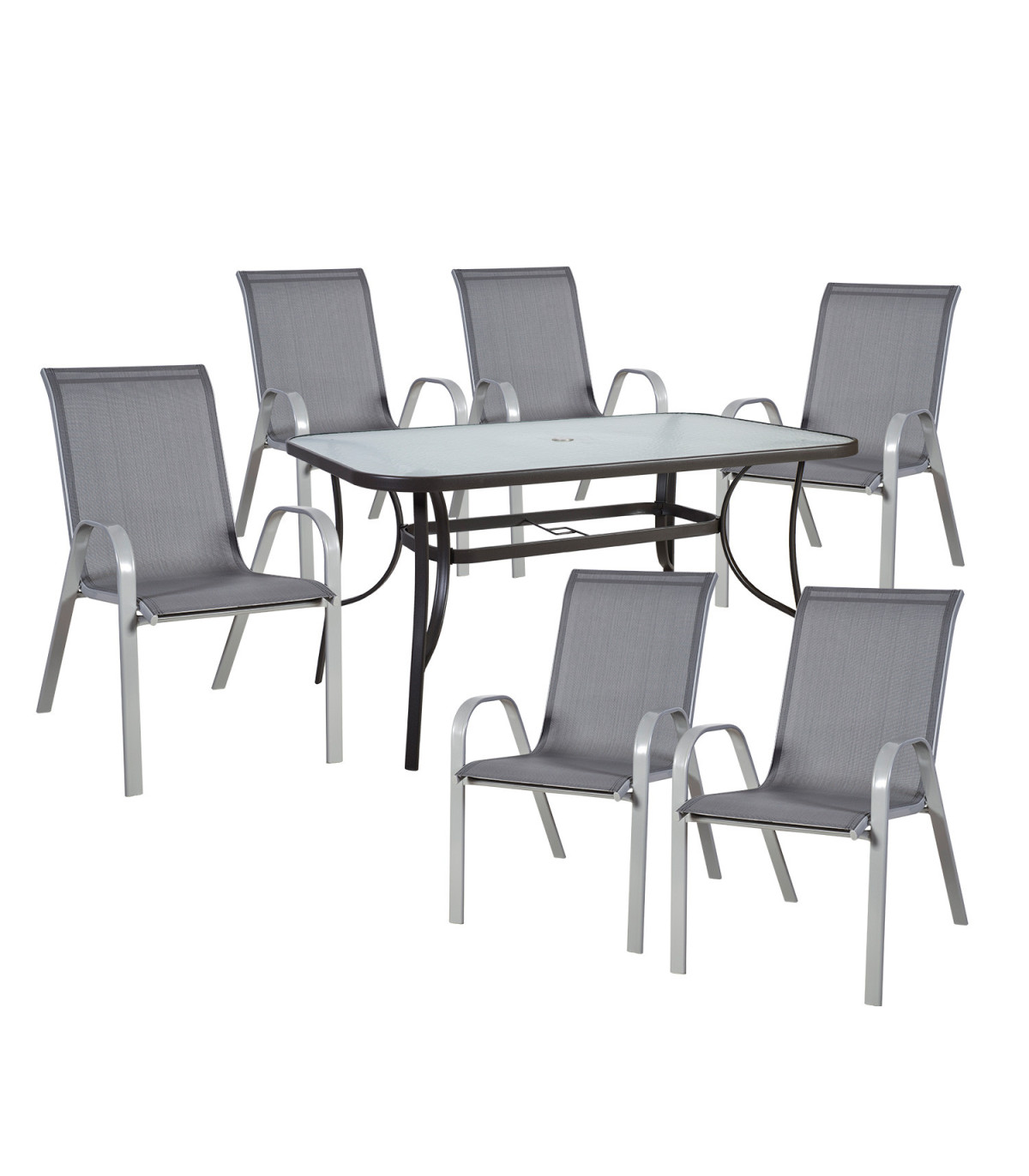 Aiamööblikomplekt DUBLIN laud ja 6 tooli, hall.