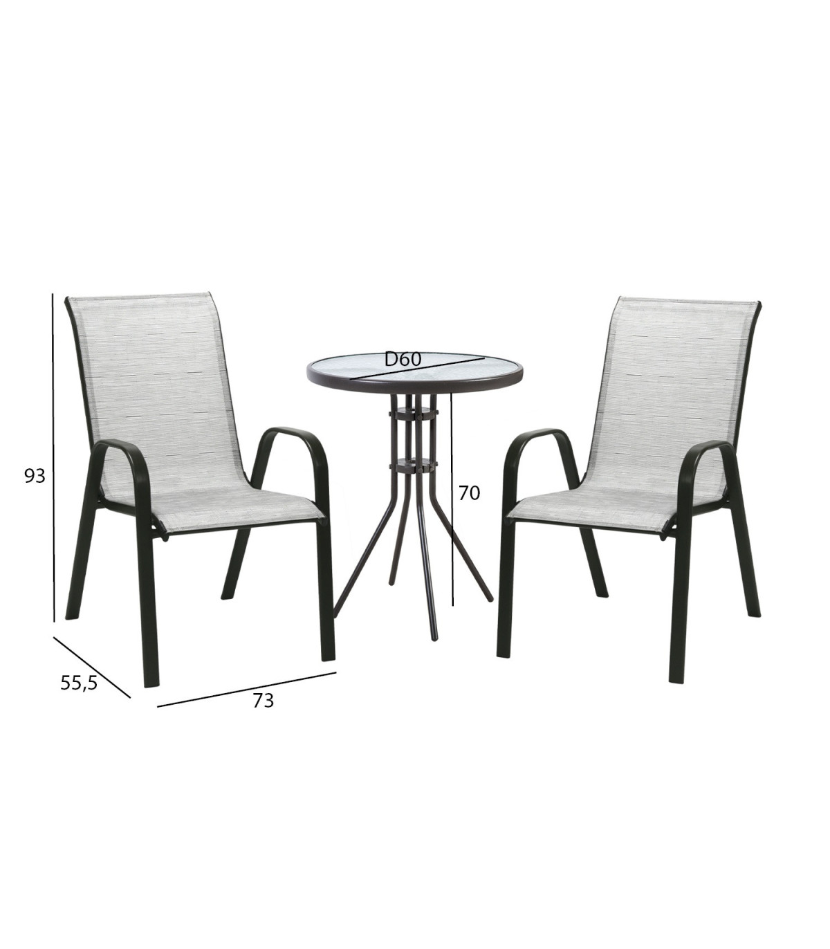Aiamööblikomplekt DUBLIN laud ja 2 tooli, hõbehall.