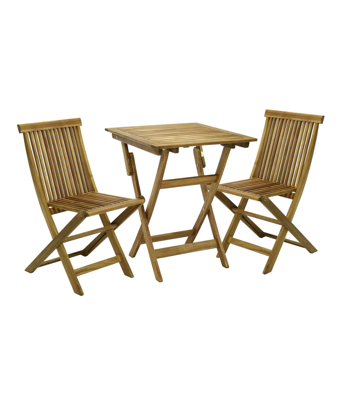 Rõdukomplekt FINLAY laud ja 2 tooli, kokkupandav. Laud ja toolid on valmistatud akaatsiapuidust ja viimistletud puidukaitseõliga. Laua mõõdud on 60x60xH72cm. Tooli üldmõõdud on 45x57xH86cm, istme laius 36cm, istme sügavus 39cm, istme kõrgus 47cm, seljatoe kõrgus 46cm. Kaalupiirang 90kg. Toode on muutlikes ilmastikuoludes vastupidav. HOOLDUS: puit on elav looduslik materjal, mille välisilme ilmastikutingimuste tõttu muutub. Puhastage mööblit regulaarselt, kaitske liigniiskuse ja UV kiirguse eest. Kerge lihvimine ja uus õlikiht vähemalt korra aastas on piisav värskenduskuur mööblile uue näo andmiseks.