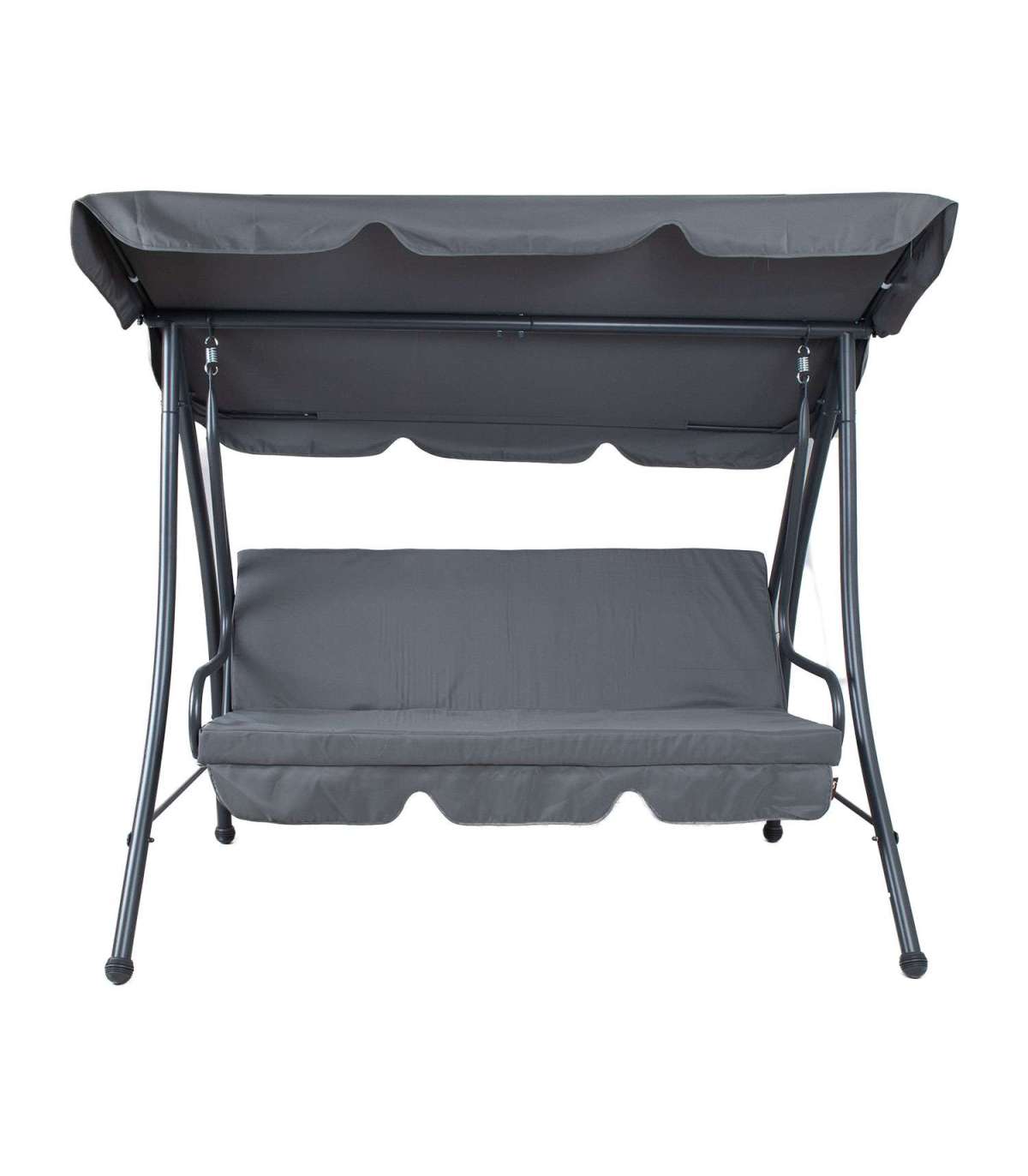 Kiige tugev ja stabiilne terasraam on viimistletud halli pulbervärviga.