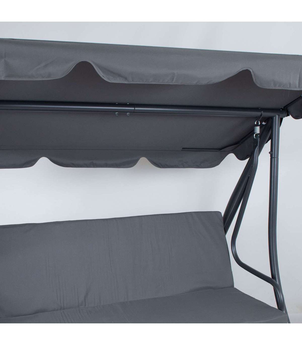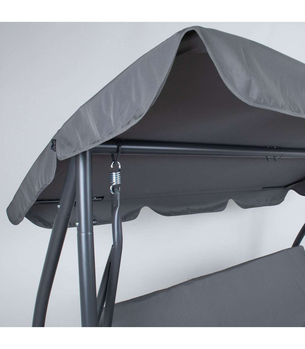 Kiige katuseraam on kaetud halli polüesterkangaga (180g/m²). Katuse kaldenurk on reguleeritav.