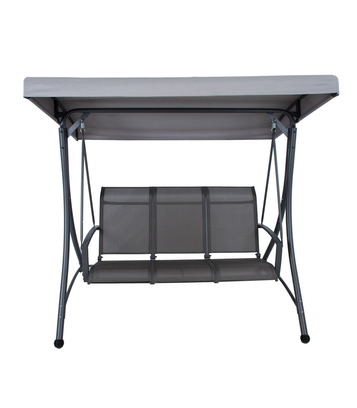 Kiige tugev ja stabiilne terasraam on viimistletud halli pulbervärviga.