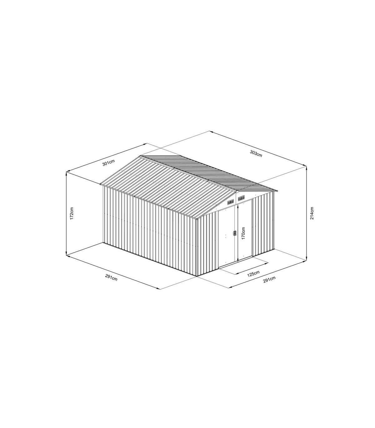 Mõõdud koos katuse üleulatuvate osadega (P x L x K): 303 x 301 x 214 cm