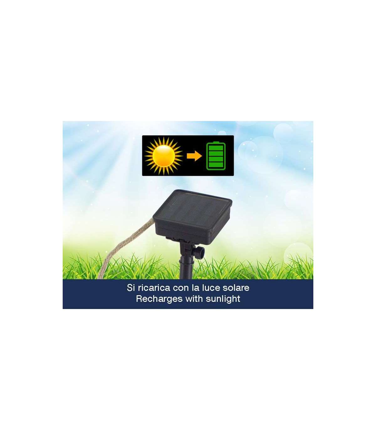 Tänu päikesepaneelilt tulevale energiale lülitub lamp pimedas automaatselt sisse ja päevavalguses välja.
