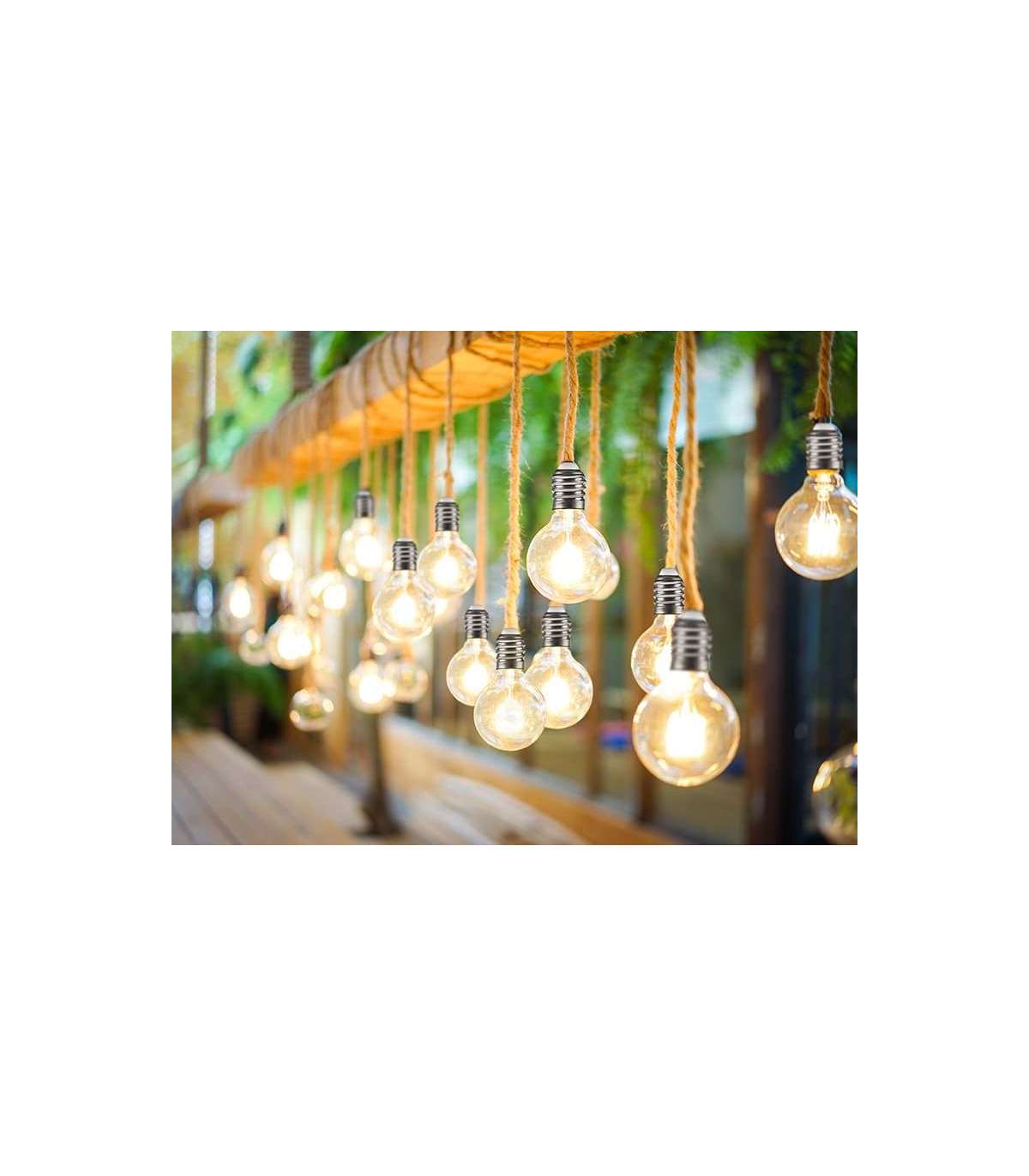 Dekoratiivsete päikesepirnide kett köiega.