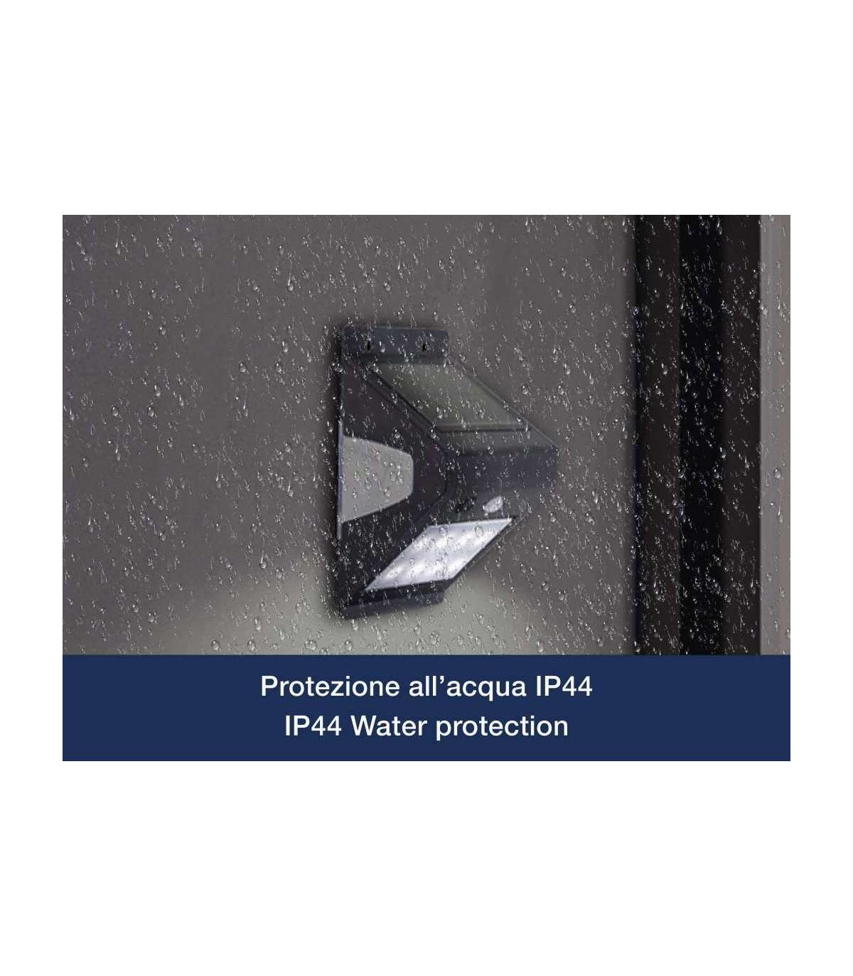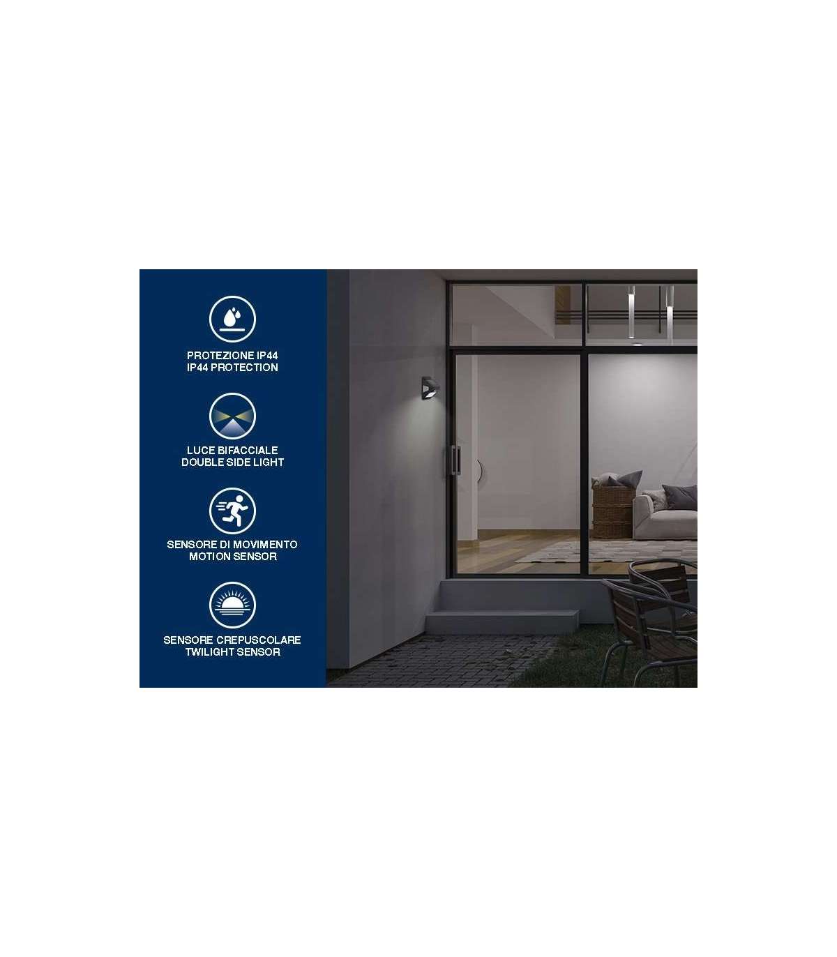 Päikeseenergial töötav kahepoolse valgusega seinalamp.