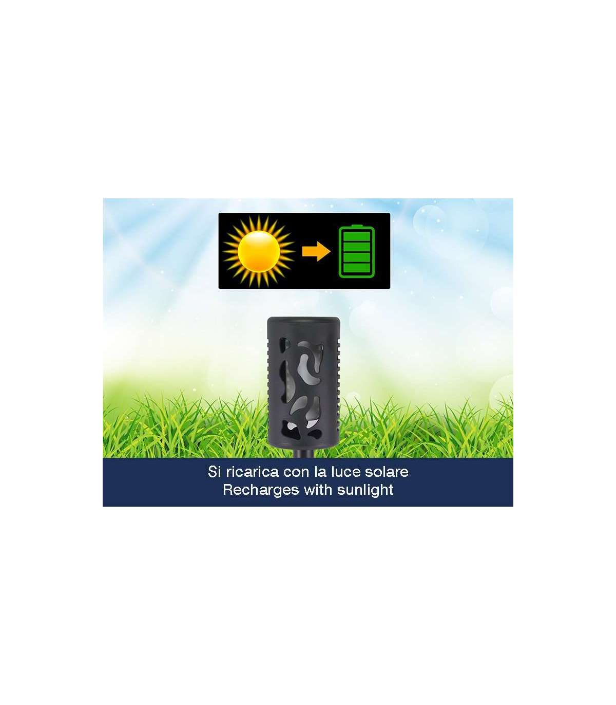 Dekoratiivne päikesepõrandavalgusti statiiviga terrassile, aeda või rõdule. Töötab päikeseenergiaga, ei vaja juhtmeid ega pistikuid ning loob õhtuti hubase valguse.