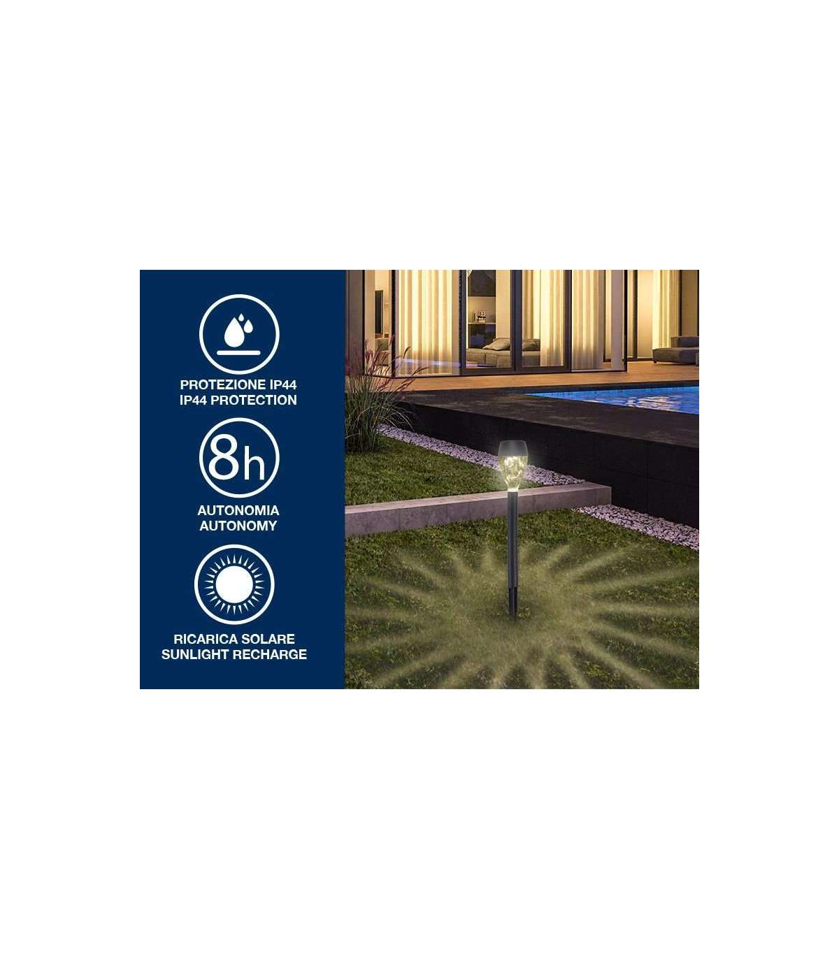 Dekoratiivne päikesepõrandavalgusti statiiviga terrassile, aeda või rõdule. Töötab päikeseenergiaga, ei vaja juhtmeid ega pistikuid ning loob õhtuti hubase valguse.