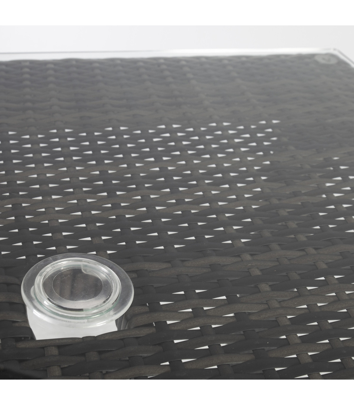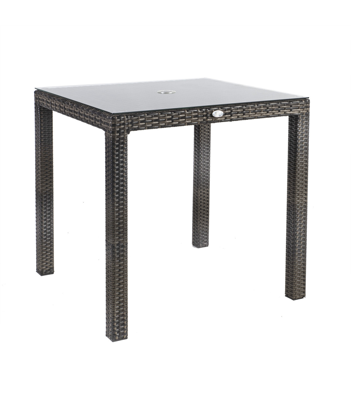 Laud WICKER 73x73xH71cm, tumepruun. Lauaplaat: 5mm läbipaistev karastatud klaas. Laua pulbervärvitud alumiiniumraam on kaetud plastikpunutisega. Toode on muutlikes ilmastikutingimustes hästi vastupidav ja ei nõua erilist hooldust. Välitingimustes kasutatava mööbli eluea pikendamiseks soovitame kasutada välimööbli katteid. HOIUSTAMINE: suvehooaja lõppedes soovitame aiamööblit hoiustada siseruumides. Puhastage ja kuivatage mööbel enne hoiule panekut. Kasutage hoiustamiseks kuiva ning hea ventilatsiooniga ruumi.